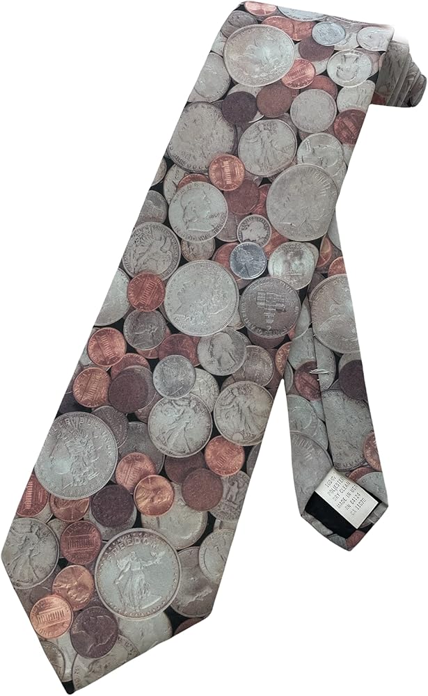 تُصور ربطة العنق مجموعة من العملات المعدنية الأمريكية! ربطة عنق مثالية لأي محاسب