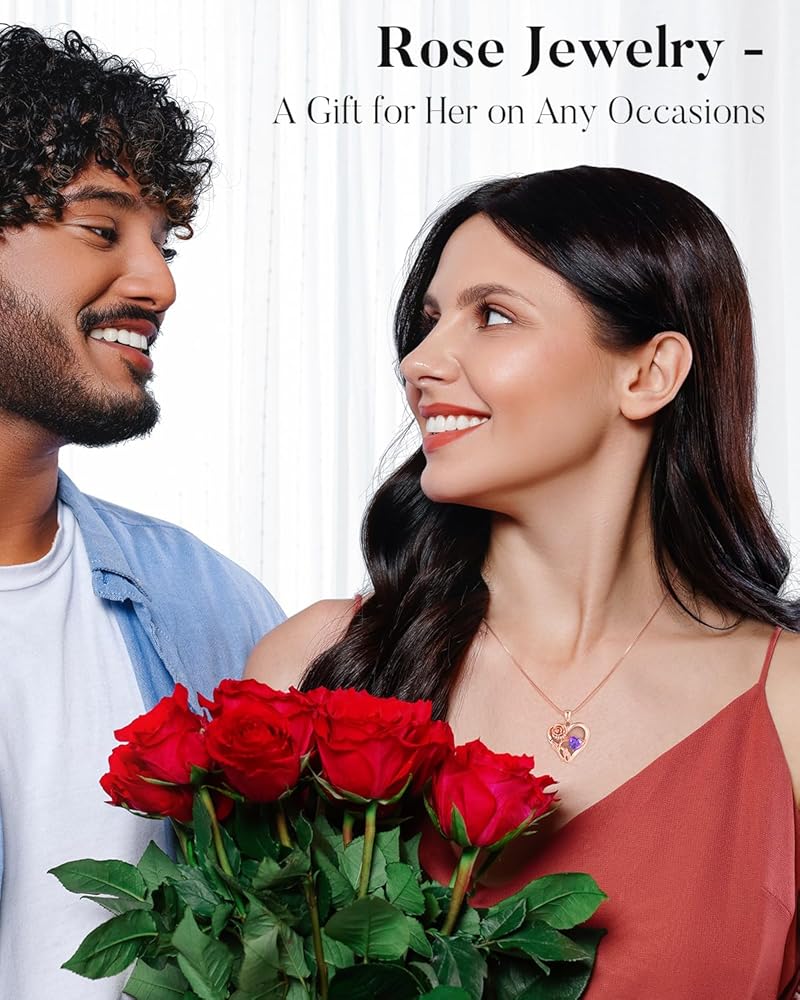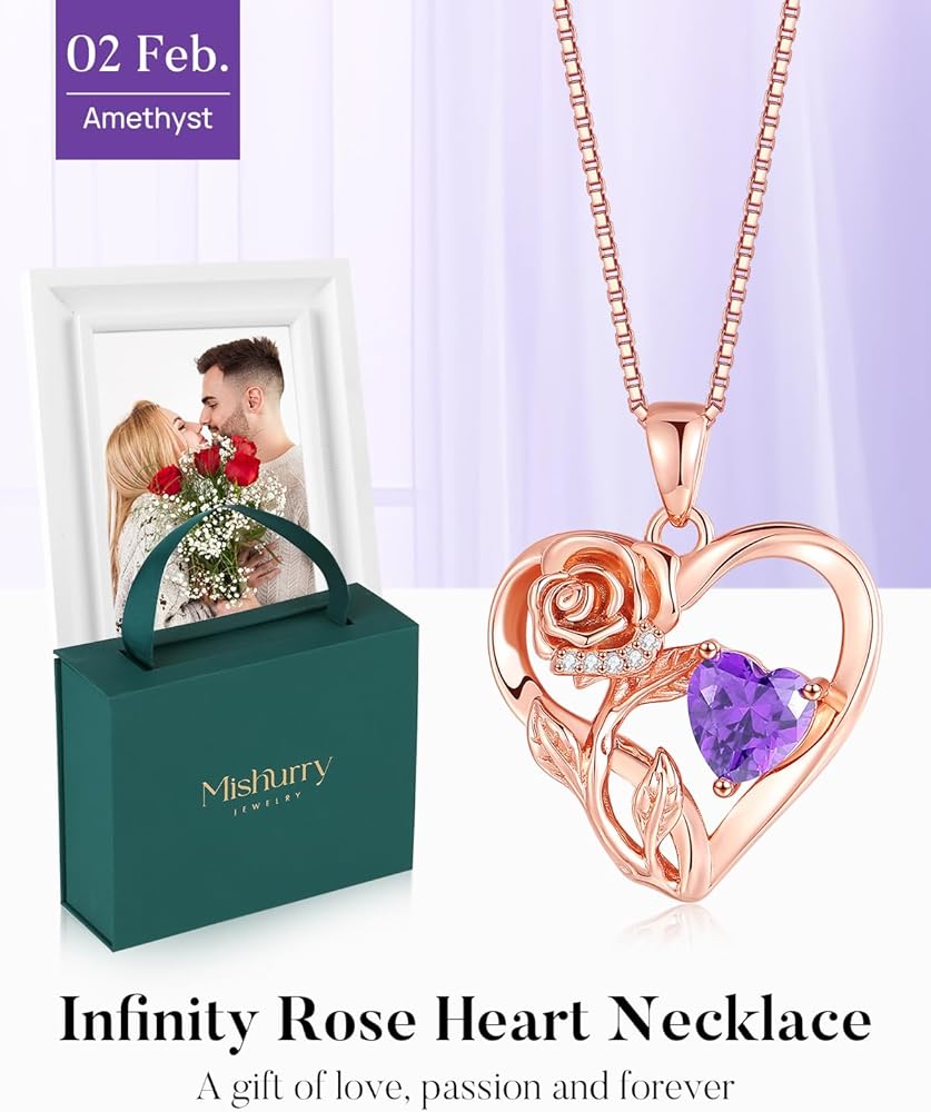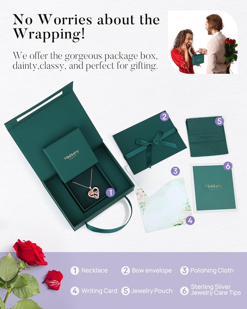 【 قلادة على شكل قلب وردي لا نهاية لها تعني الحب إلى الأبد】تتميز القلادة الجميلة للنساء بزهرة وردة مفعمة بالحيوية مع جذع يشكل رمزًا لا نهاية له مع منحنى القلب الأيسر. يوجد على اليمين حجر ألماس القلب، وهو أفضل زركونيا مكعب 5A+ مع بريق رائع وعمق مشابه للألماس الحقيقي. كل التصميم الخاص يجعل المجوهرات هدايا رائعة لعيد الحب للنساء البالغات أو الفتيات المراهقات.