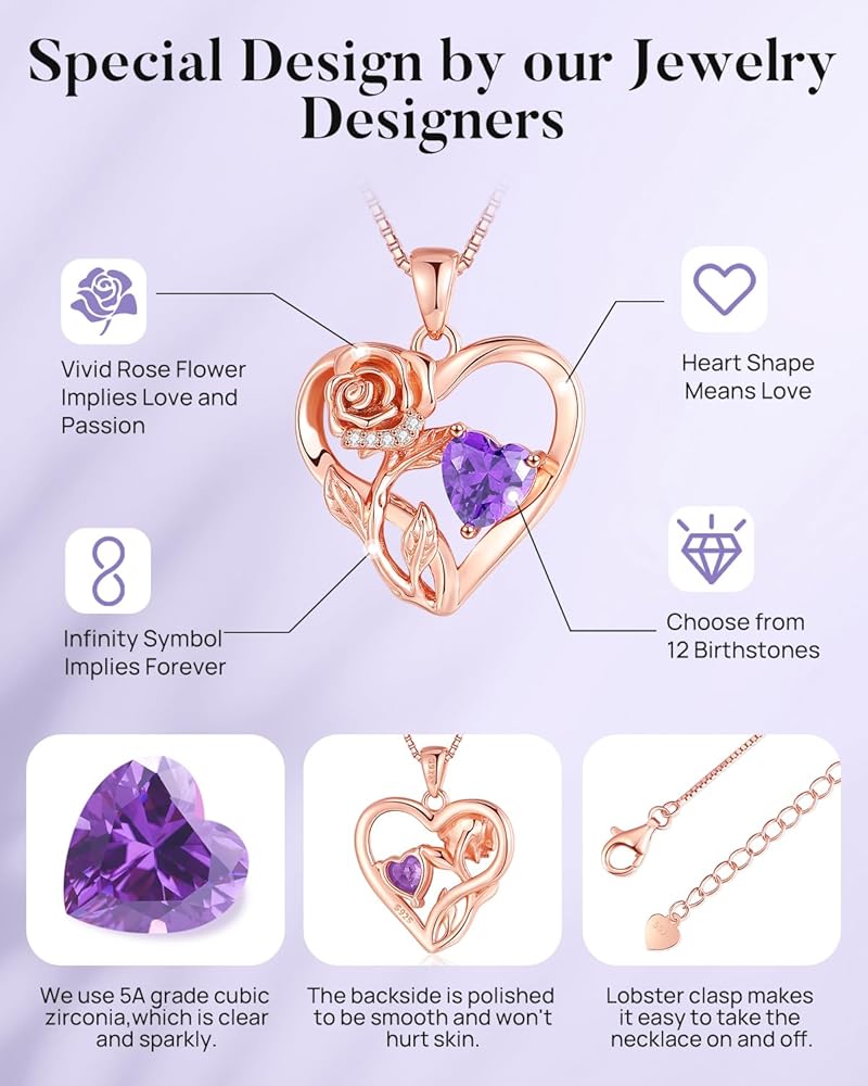 إنفينيتي روز زهرة القلب القلائد للنساء 925 الفضة الاسترليني مجوهرات الذكرى السنوية لها هدايا الحب للزوجة صديقة الأخت الجدة أمي ابنة الأمهات عيد الحب عيد الميلاد عيد الميلاد ارتفع الذهب والمجوهرات قلادة جوهرة