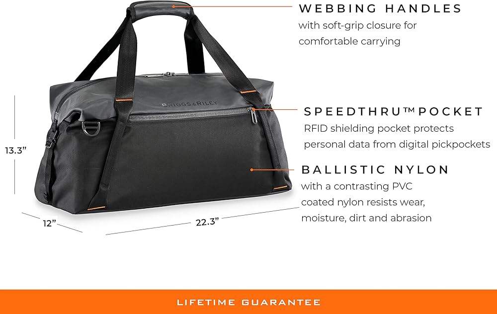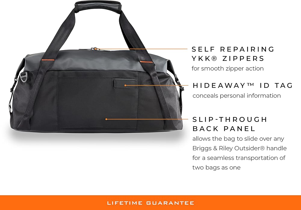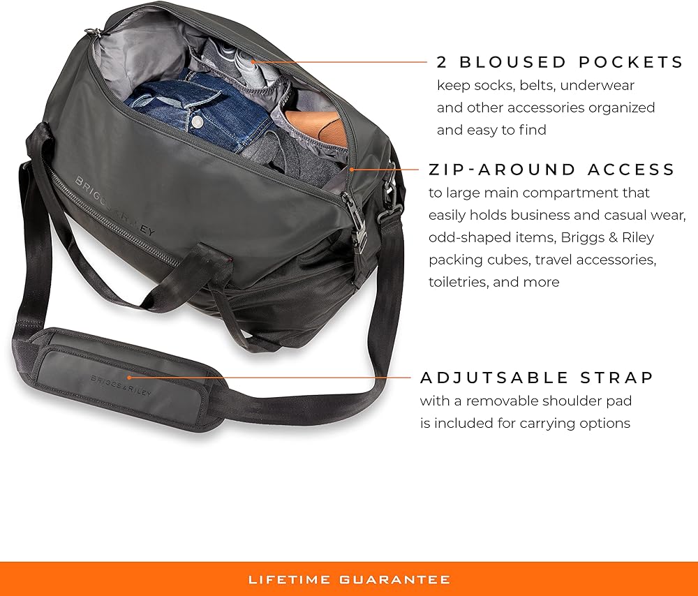 • Zip-around access to large main compartment that easily holds business and casual wear, odd-shaped items, Briggs & Riley packing cubes, travel accessories, toiletries and more