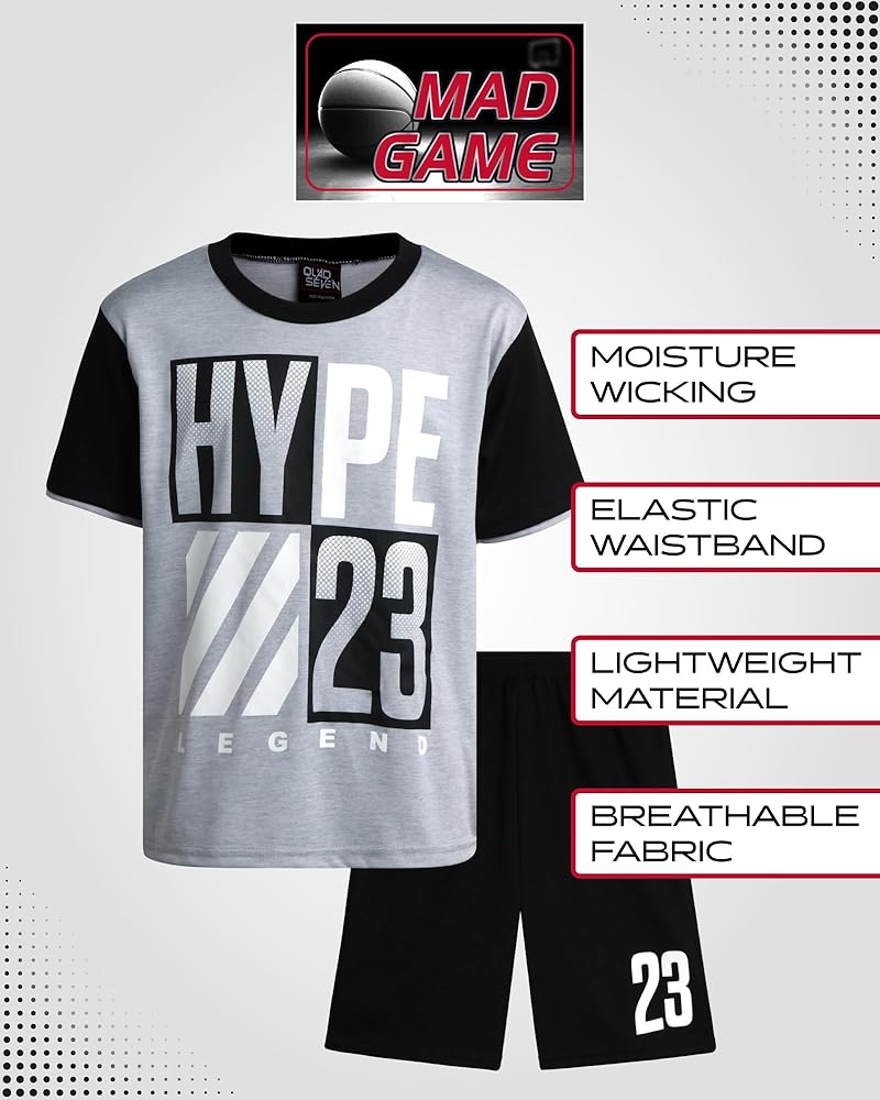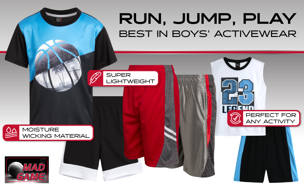 OFFICIALLY LICENSED MAD GAME: Boys' Active Short Set with a Dry Fit Performance T-Shirt and Basketball Shorts, Two Piece Kids Clothing Set; Score style points left and right with our all-star fashion for true ballers! Mad Game has got you covered on and off the court