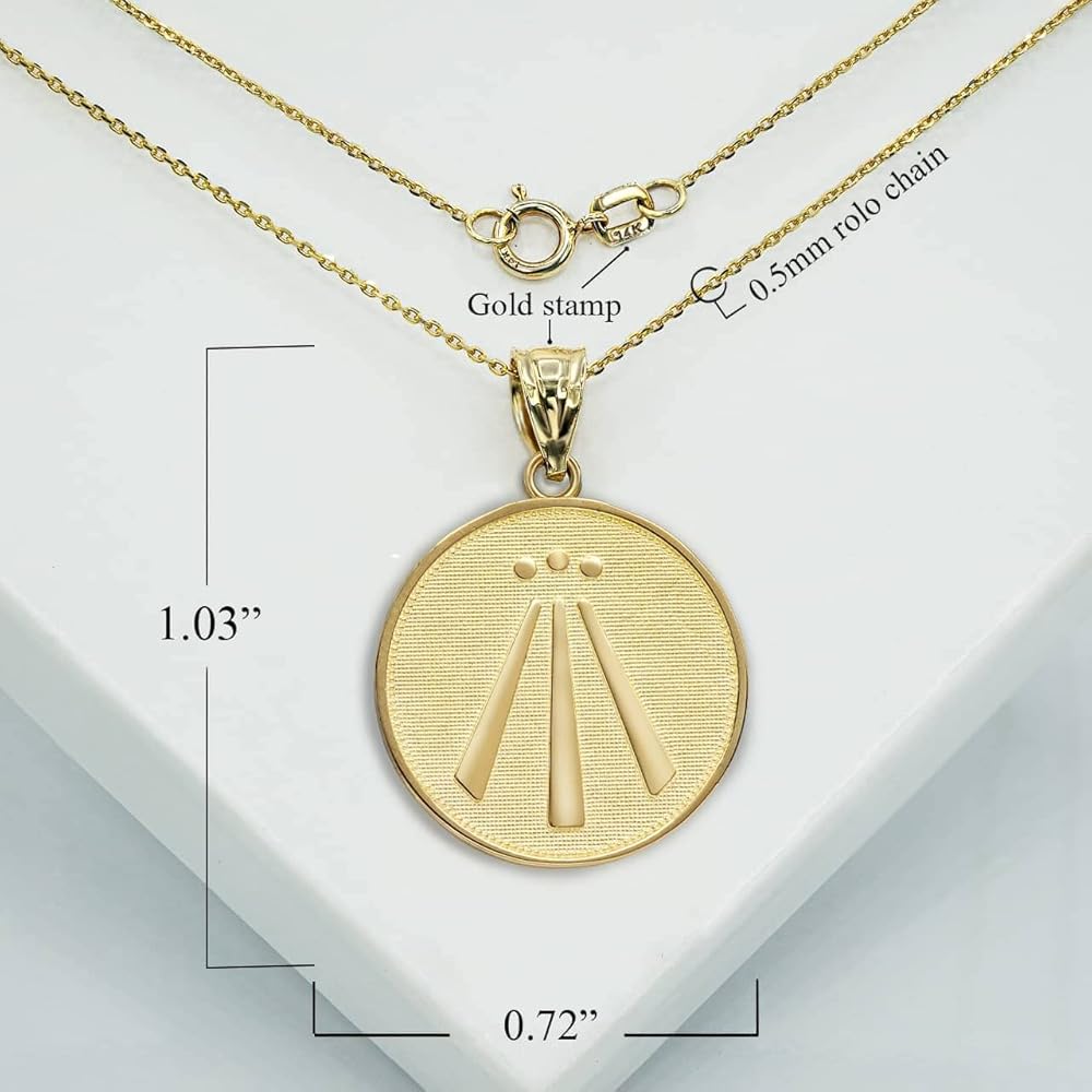 10k Yellow Gold Round-Shaped Awen Druid Pagan Celtic Wiccan Symbol Druid Witch Spiritual in Solid Gold Pendant