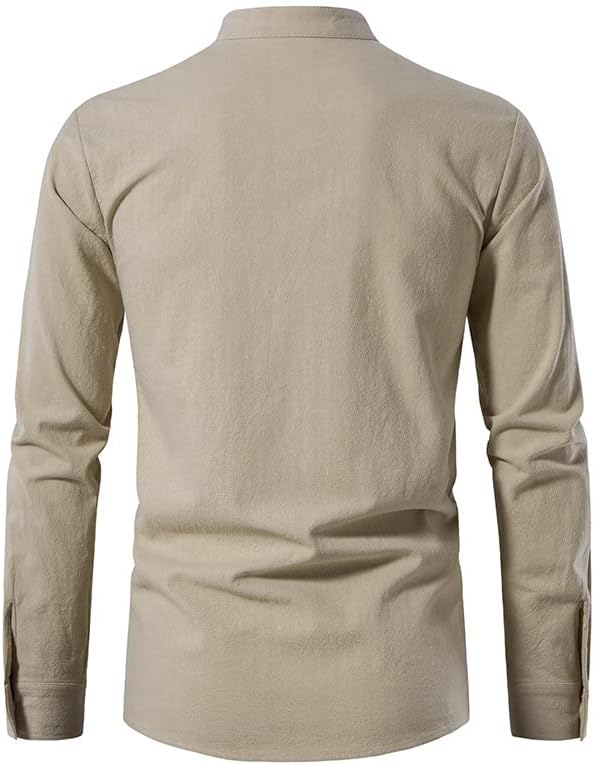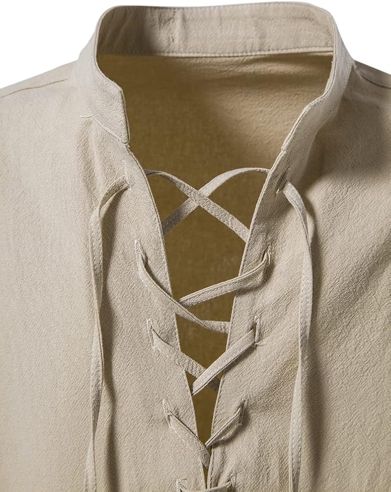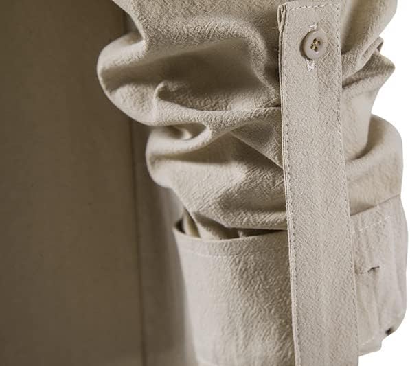 - السمات: قمصان كلاسيكية، إغلاق برباط، أكمام طويلة وأكمام ملفوفة، ياقة ماندرين، مقاس عادي / أكمام قابلة للتعديل، نمط فريد من العصور الوسطى.