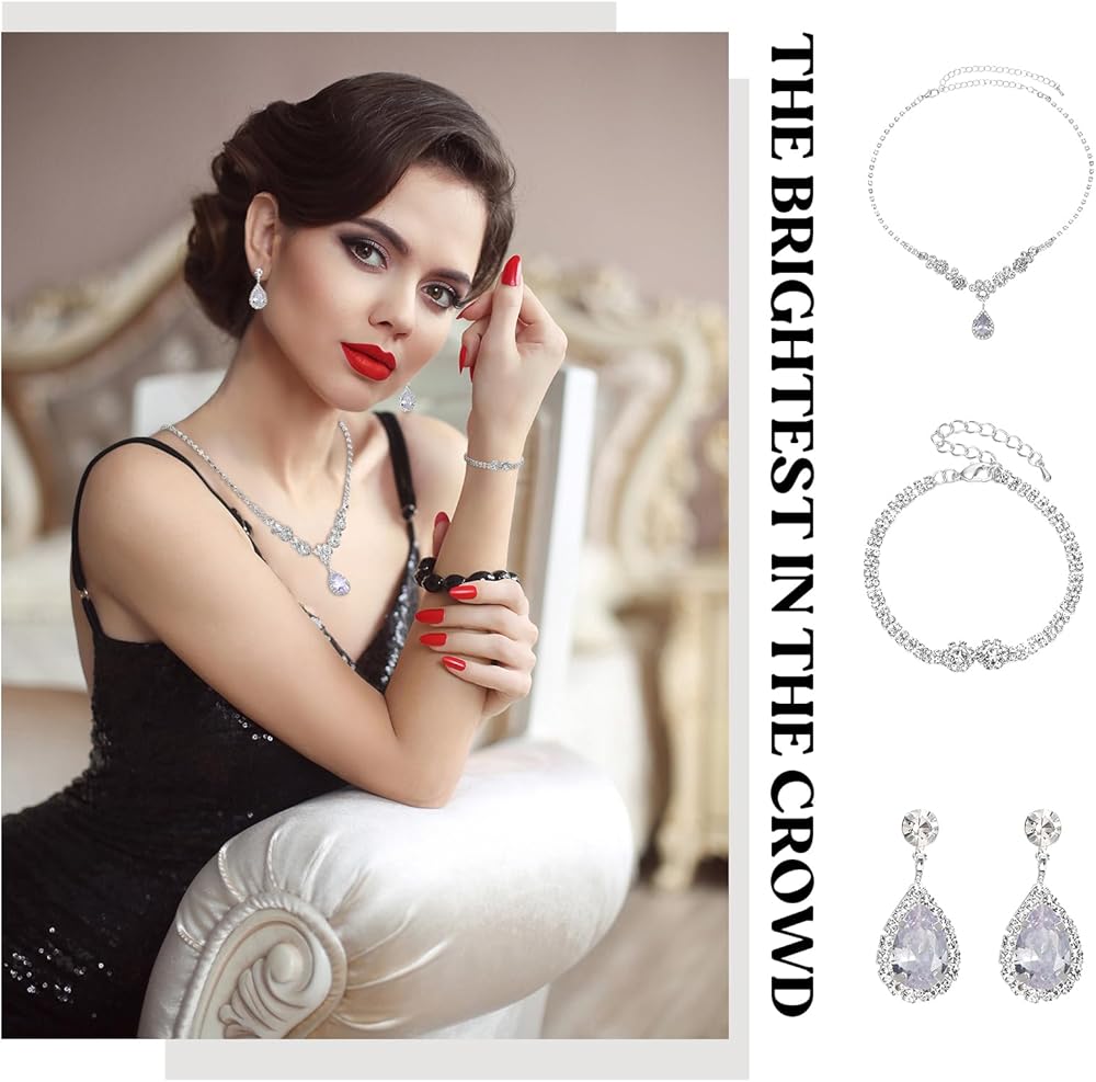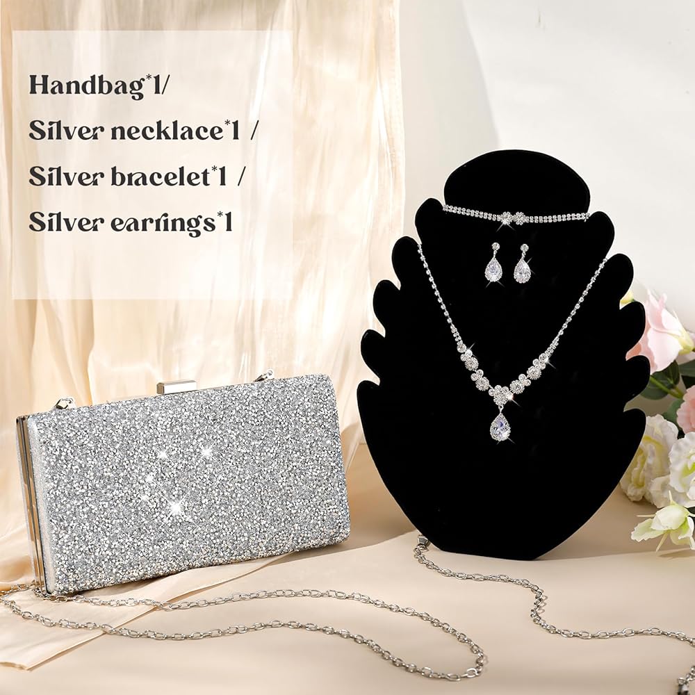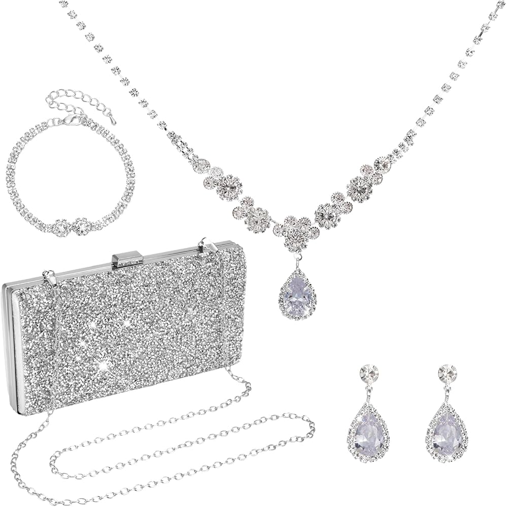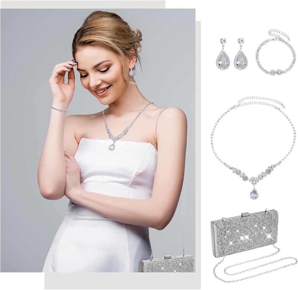 مجموعة إكسسوارات رقيقة: سوف تحصل على قطعة واحدة من محفظة القابض، قطعة واحدة من القلادة، زوج واحد من الأقراط، 1 قطعة من السوار، لطيفة للحفلات المسائية وحفلات الرقص والحفلات الموسيقية وحفلات الزفاف أو غيرها من المناسبات الرسمية