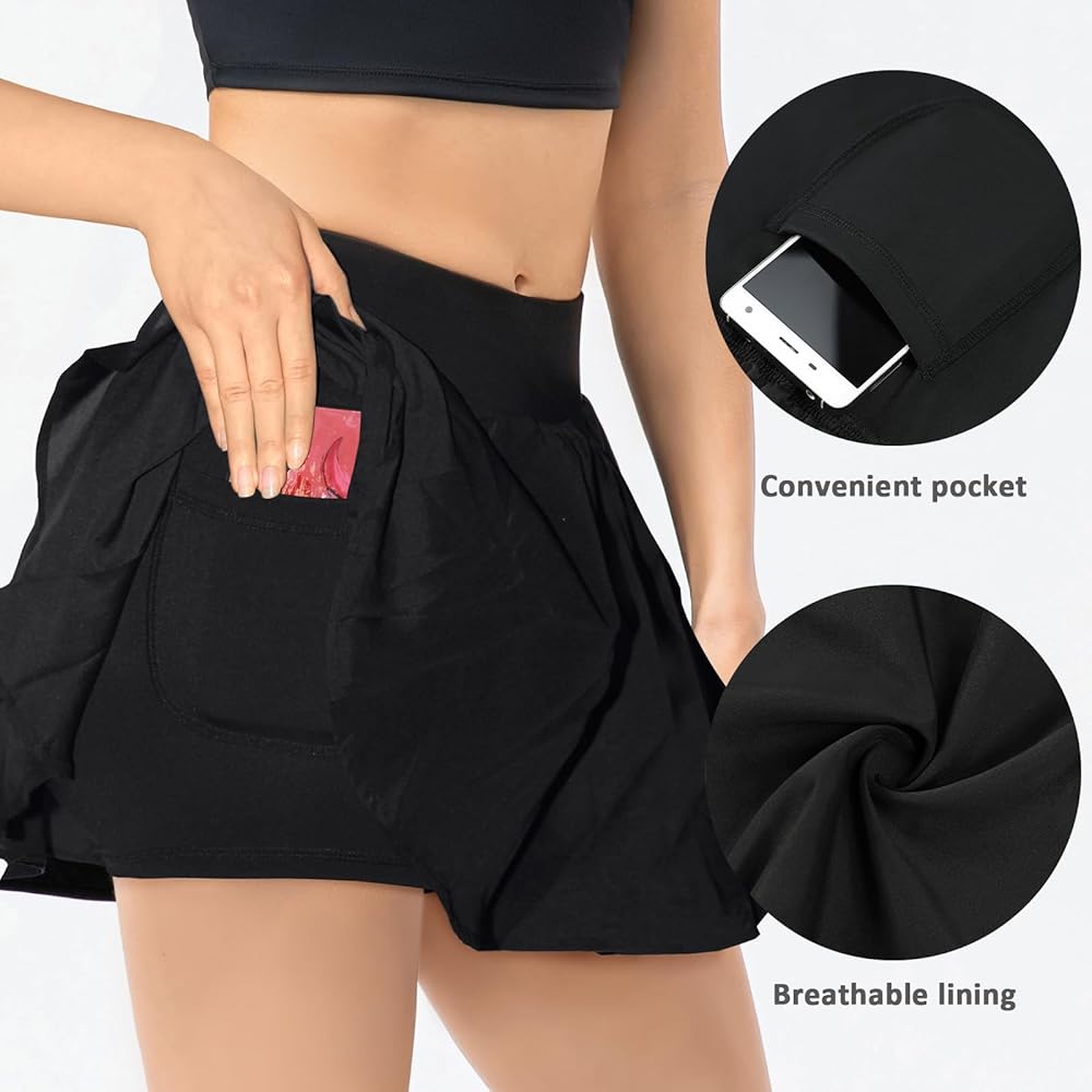 جيب مدمج: تتميز تنورة التنس هذه بجيب واحد لتخزين كرات التنس والهاتف والبطاقات وغيرها من الضروريات، مما يترك يديك حرة للتركيز على تمرينك.