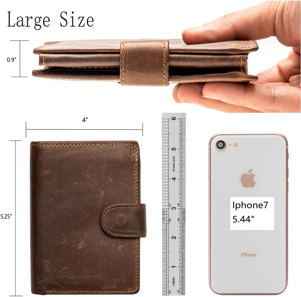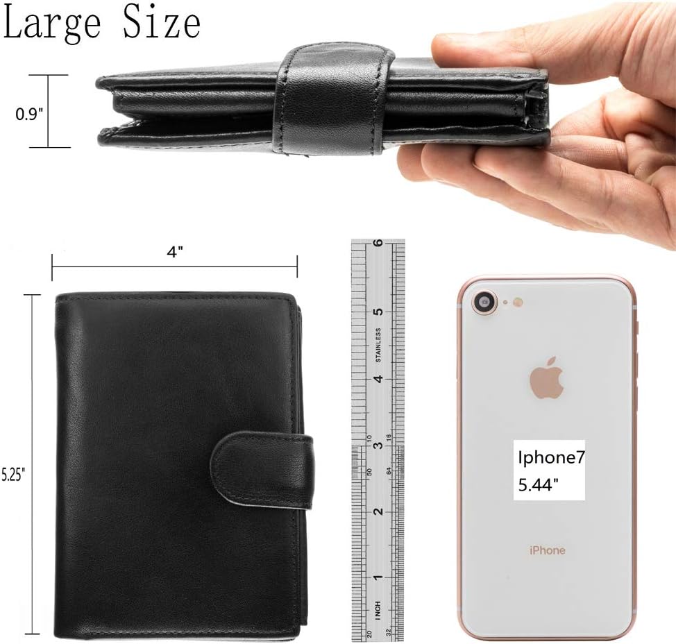 حجم كبير كبير: إنها محفظة كبيرة كبيرة، تشبه إلى حد كبير محفظة الرجال، هناك مقارنة مع Iphone 7 في الصورة. يرجى الانتباه إلى الحجم الذي تريده. مطوية (الطول × العرض × الارتفاع: 5.25 بوصة × 4 بوصة × 0.9 بوصة) ") . مع جيبين للفواتير، وجيب واحد بسحاب، و14 فتحة لبطاقة الائتمان، و3 فتحات للصور، وجيب واحد للعملات المعدنية مع مشبك. لا يمكن وضع جواز السفر في المحفظة.