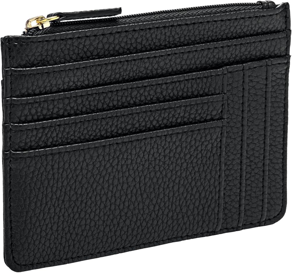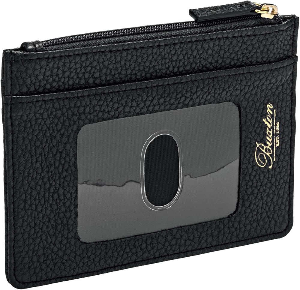 Pebble textured faux leather with RFID blocking lining, satin gold tone hardware pebble pik-me-up slot coin pouch features a top zip compartment, 5 credit card slots, 2 utility pockets and an I.D. Window.