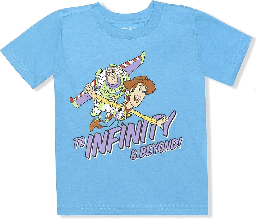 • يحتوي على طبعة واحدة من Woody وBuzz Lightyear "To Infinity & Beyond!" تي شيرت أزرق بأكمام قصيرة وطبعة One Buzz Lightyear باللون الرمادي بأكمام قصيرة