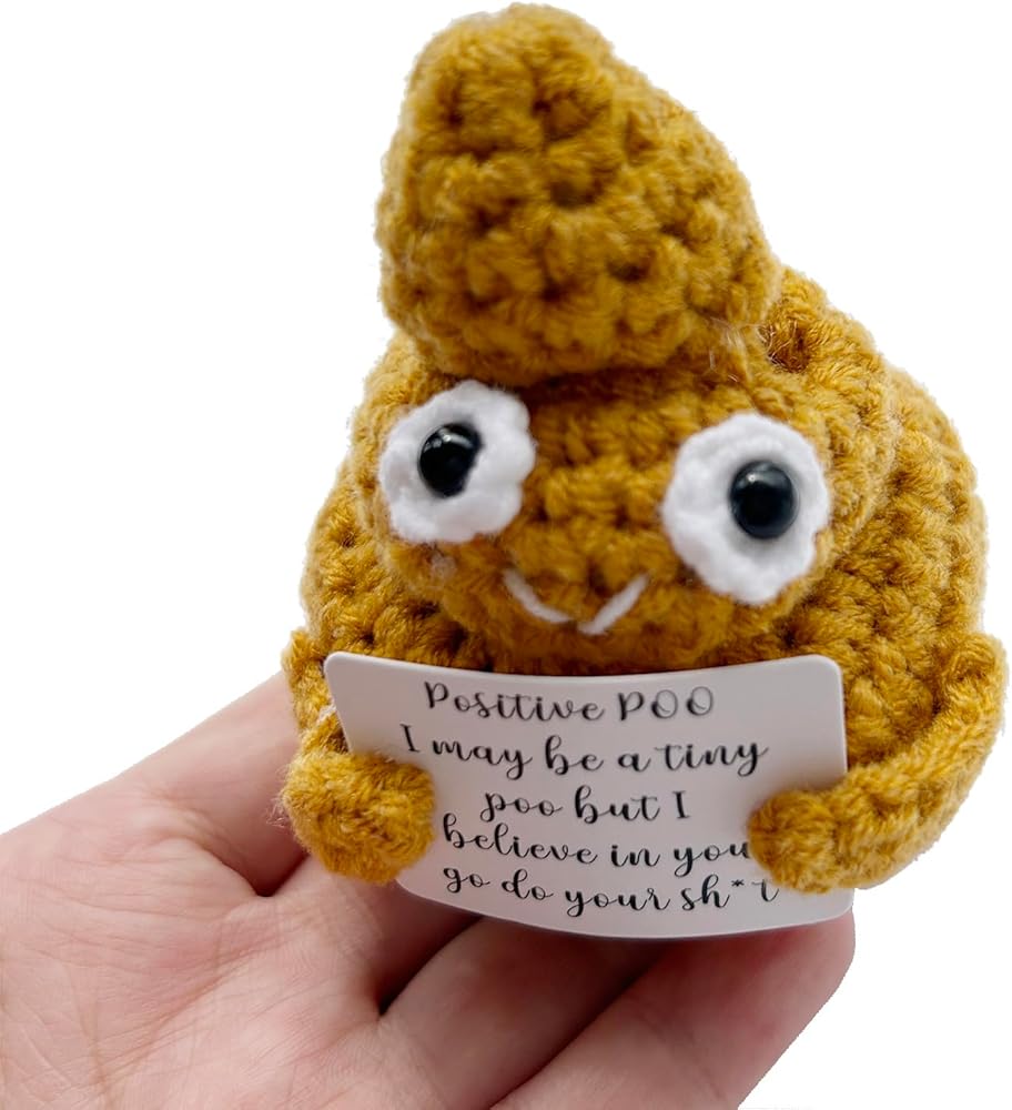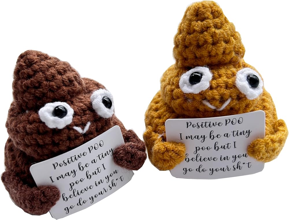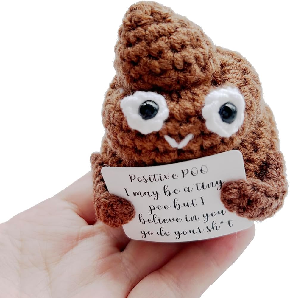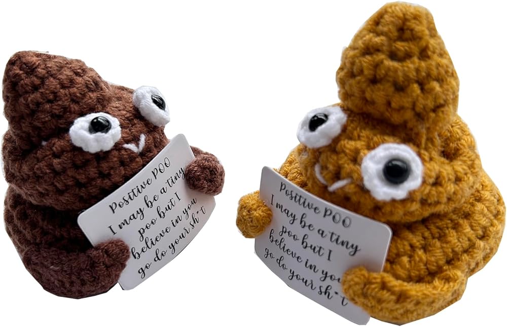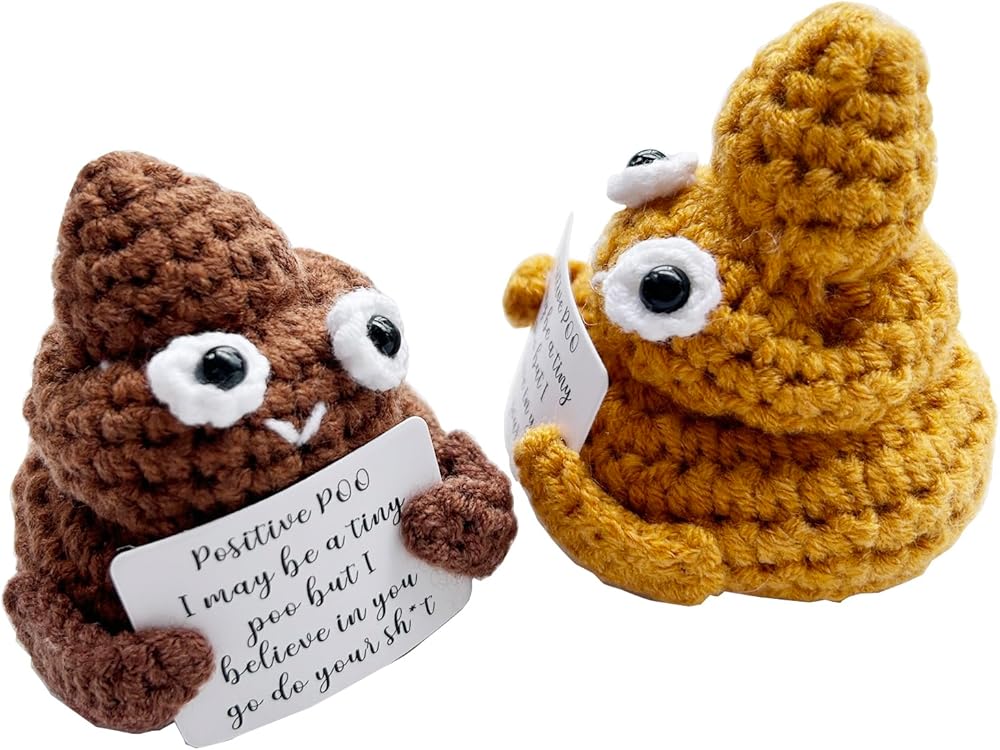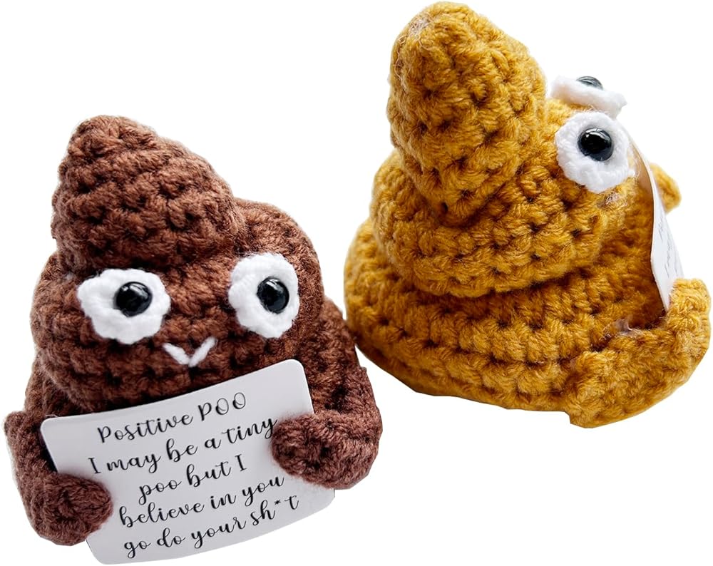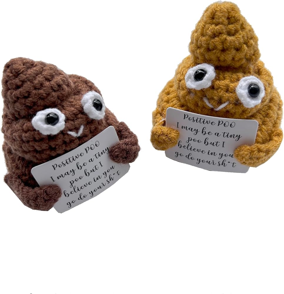Wegem 2PCS براز محبوك مضحك إيجابي، براز الكروشيه مع بطاقة رسالة إيجابية للتشجيع، هدايا صغيرة لطيف مضحك للأصدقاء (2PCS براز)