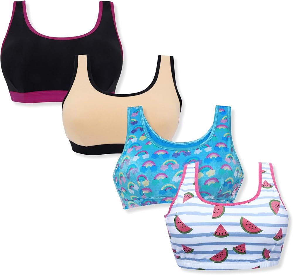استخدامات متعددة: حمالات الصدر الرياضية للشباب مثالية لليوغا والجري والتمارين الرياضية وملابس الاسترخاء. تأتي حمالات الصدر الرياضية / البلوزات القصيرة للفتيات المراهقات مع أشرطة عريضة ناعمة مثالية كحمالات الصدر اليومية أيضًا.