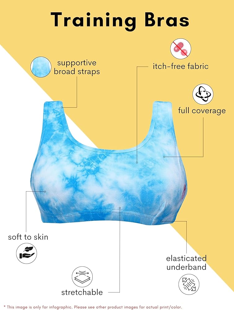 المواد: حمالات الصدر الرياضية للبنات خفيفة الوزن ومصنوعة من قماش فائق النعومة. مصنوعة من 95% قطن و5% ايلاستين، حمالات الصدر للبنات ناعمة ومتينة.