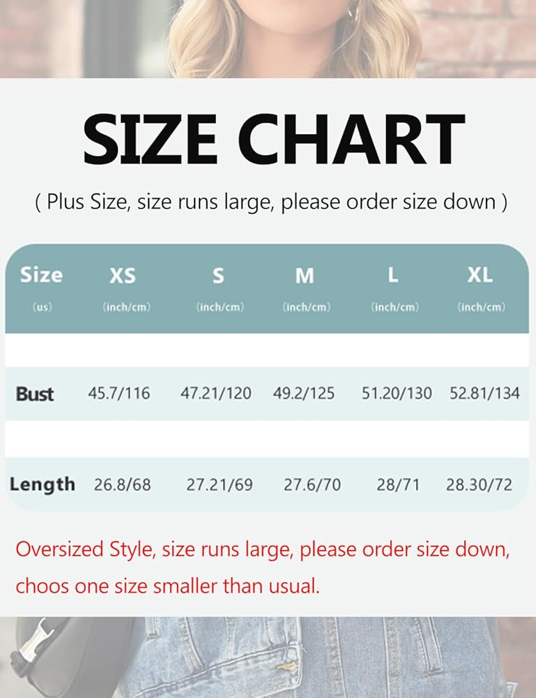 • سترة نسائية كبيرة الحجم من الدنيم، مصنوعة من مادة الدنيم القطنية، ناعمة، صديقة للبشرة، مقاس كبير، يوصى باختيار مقاس أصغر، يرجى الرجوع إلى جدول المقاسات بعناية.