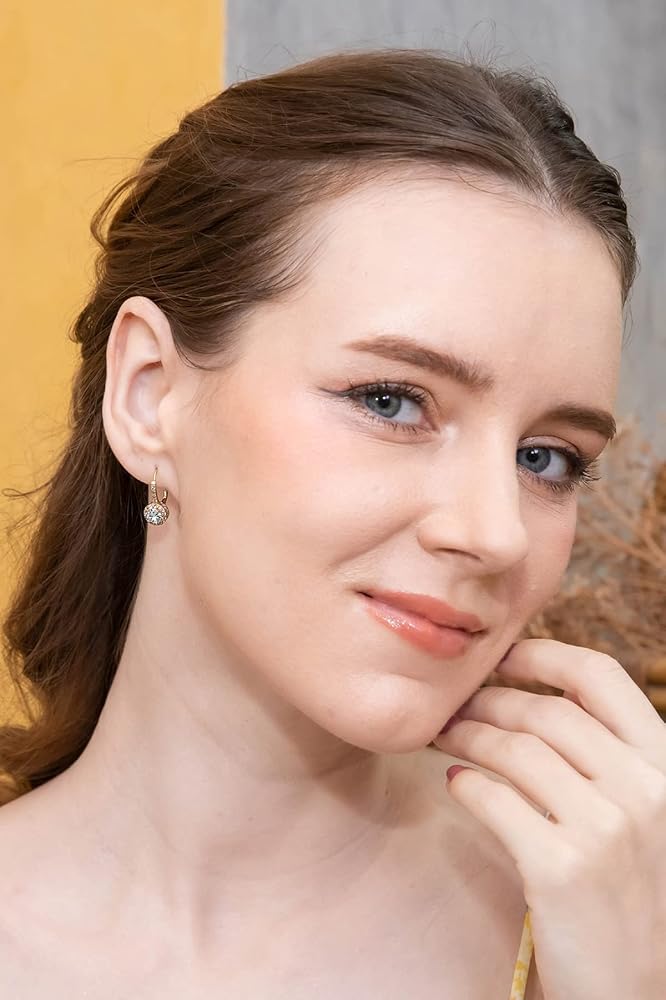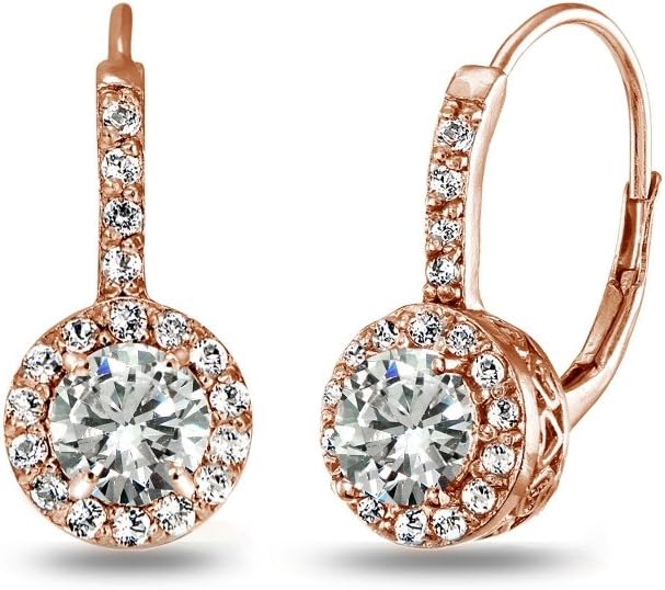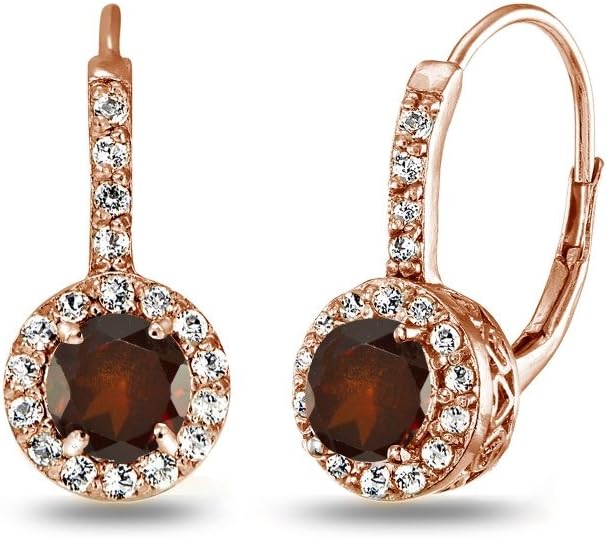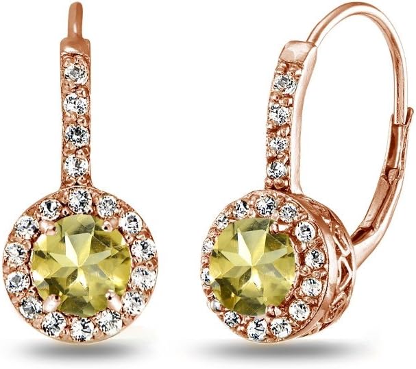 Rose Gold Flashed Sterling Silver Genuine or Synthetic Gemstone & White Topaz Round Dainty Halo Leverback Earrings