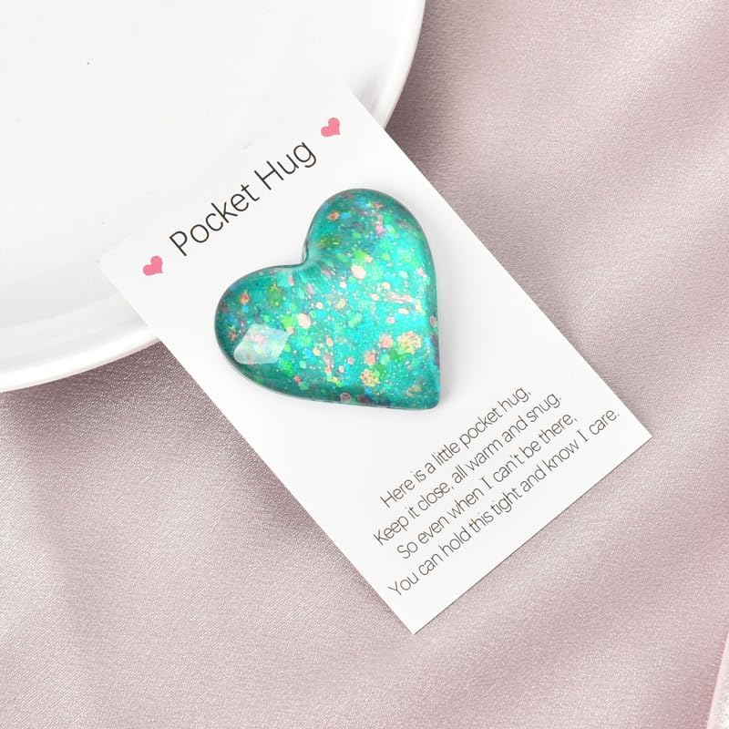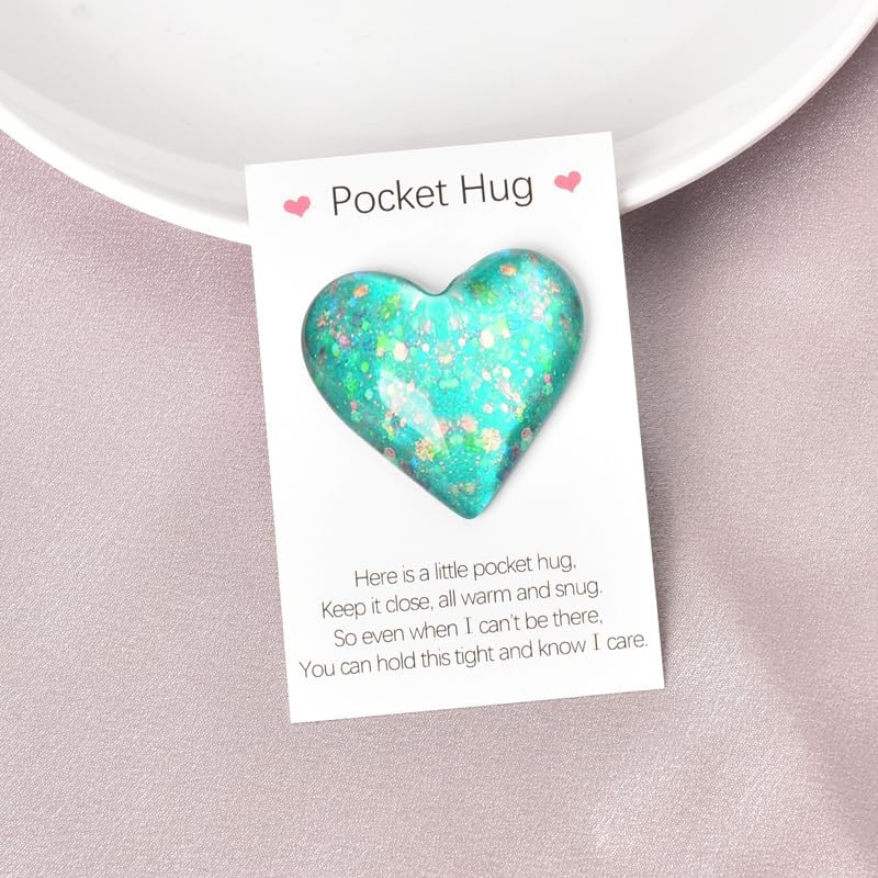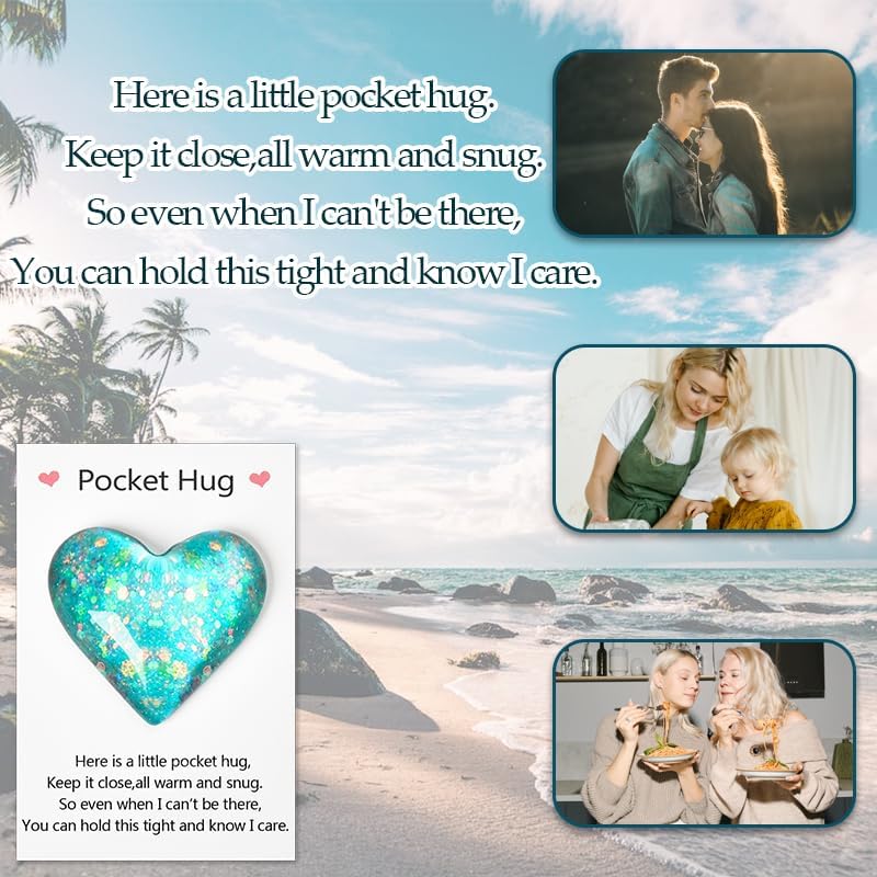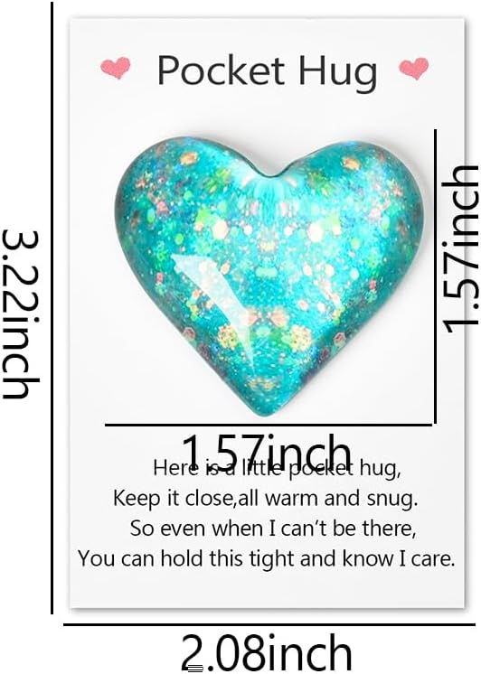 High Quality Material & Perfect Size: The heart pocket hug is made of glaze, the color is ice blue, which is bright and colorful, the size of the pocket token is 3.9 * 4.2cm, the size of the greeting card is 8.5 * 5.5cm, friendship gift for best friend bestie, long distance relationship gifts for sister brother mom grandma daughter son granddaughter grandson friend........, perfect stocking stuffers for women men, xmas christmas bday birthday gifts for women men boys girls