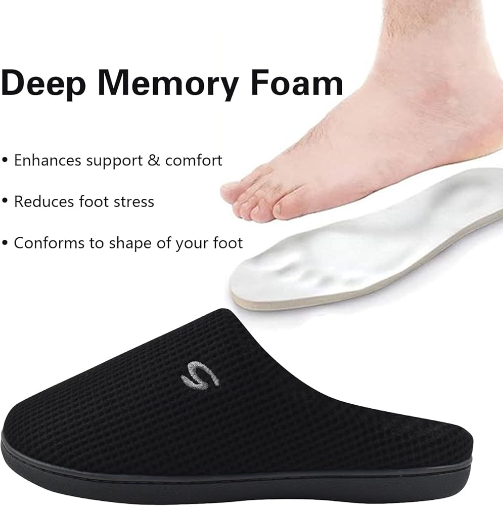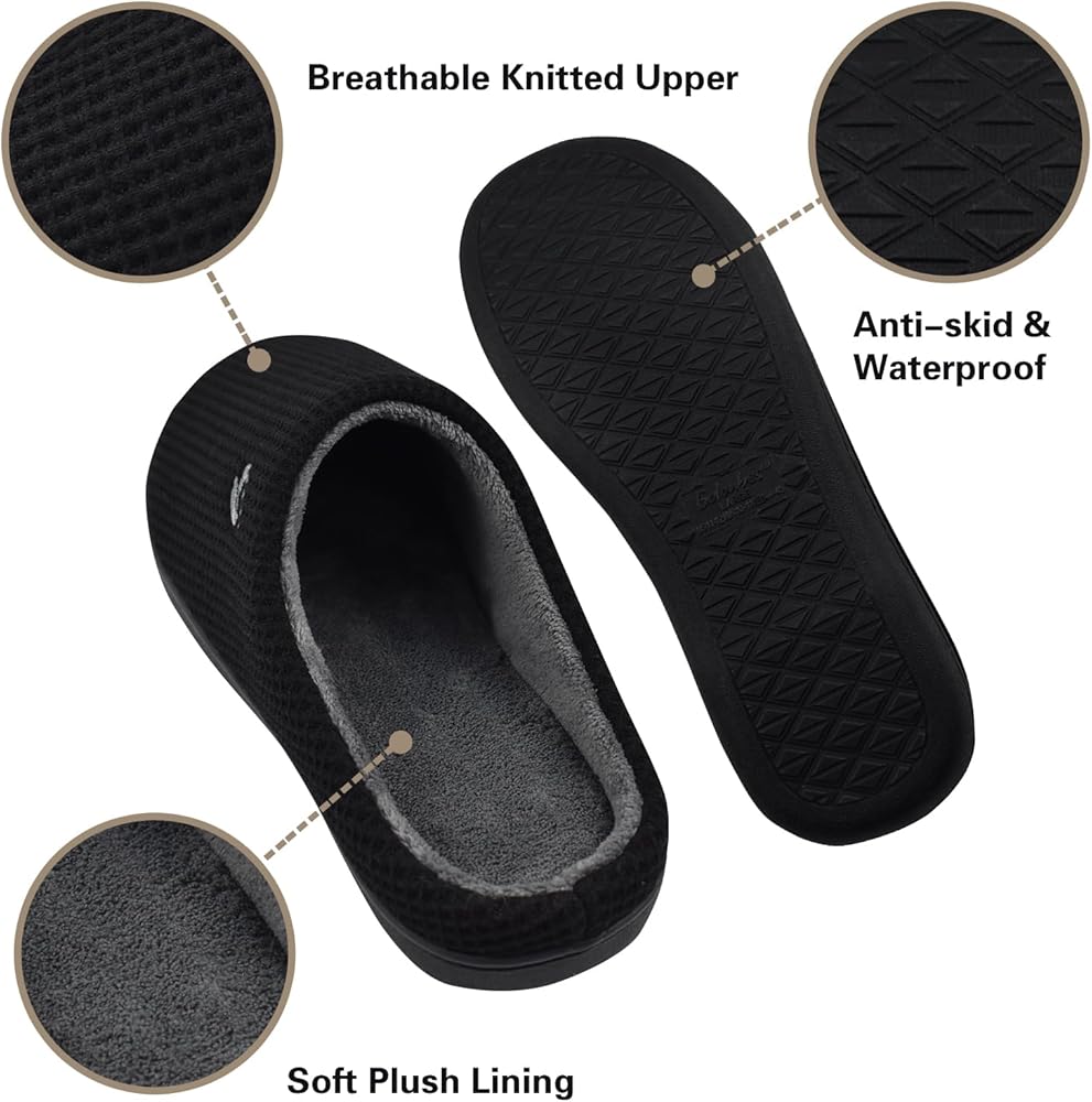 إسفنج مريح ذو ذاكرة: تتميز النعال الداخلية والخارجية المريحة للرجال بإسفنجة ذات ذاكرة عالية الكثافة لتوفير توسيد ودعم ممتازين. نعل داخلي يتوافق مع انحناءات قدمك من أجل راحة ناعمة للوسادة. بعد يوم طويل، ارتدي زوجًا من النعال الناعمة المريحة واستمتع بالاسترخاء الذي يستمر طوال المساء.