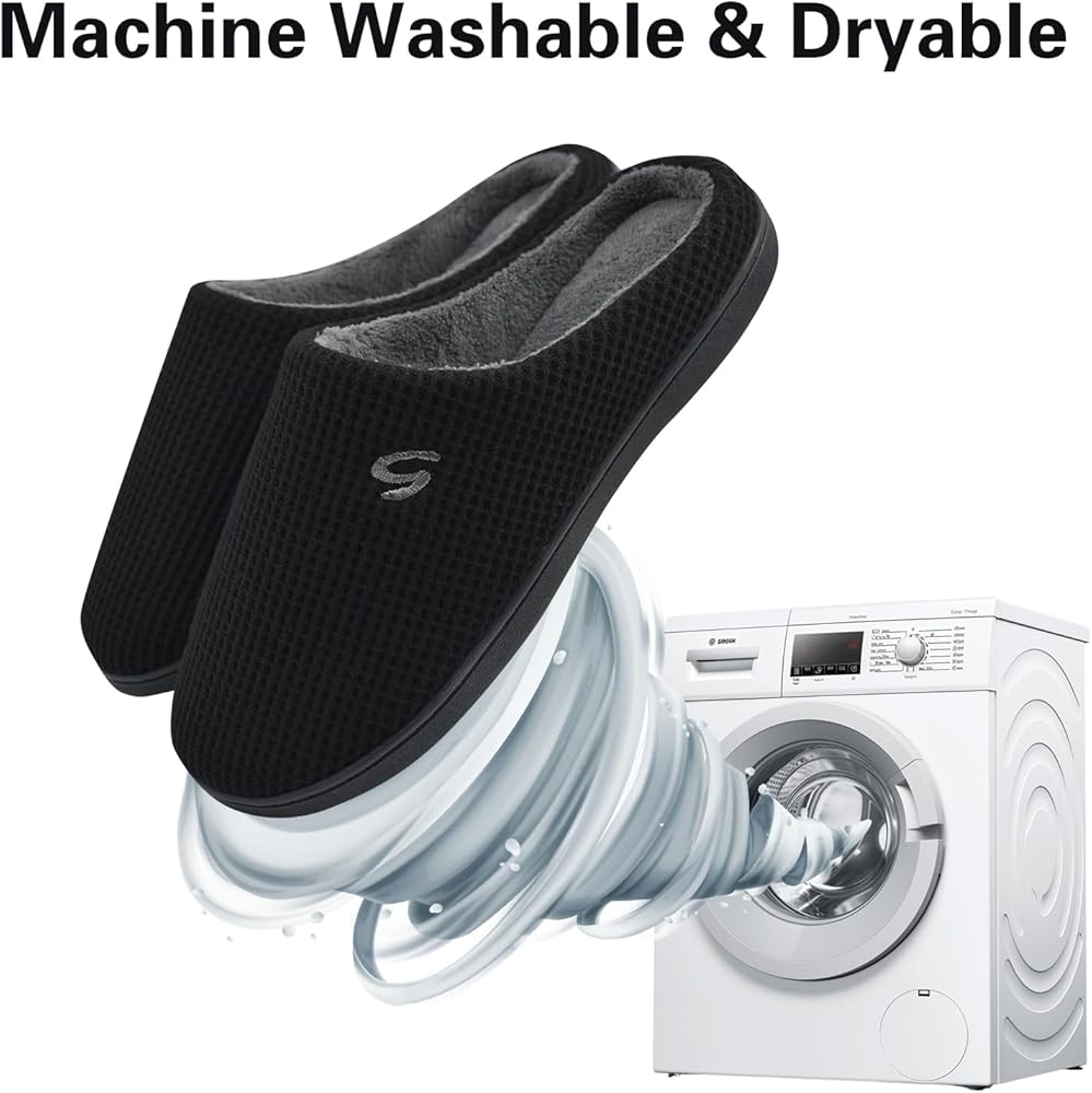 نعل مطاطي قوي غير قابل للانزلاق: نعل مطاطي متين وخفيف الوزن يسمح لك بالمشي إلى صندوق البريد، أو إخراج القمامة أو سقي العشب دون تبديل الأحذية. يسمح لك بالمشي بأمان وحرية في الحمام وغرفة المعيشة دون إصدار صوت.