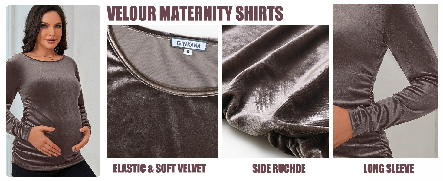 القماش: قميص الحمل هذا مصنوع من نسيج مخملي فاخر، مما يوفر ملمسًا ناعمًا ومريحًا بينما يبقيك دافئًا أثناء الحمل. نصيحة: قد يكون القماش المخملي أكثر عرضة لجذب الغبار أو الجزيئات الصغيرة، لذا يُنصح بغسله بعد استلام البضائع قبل ارتدائه.