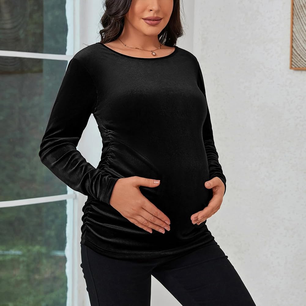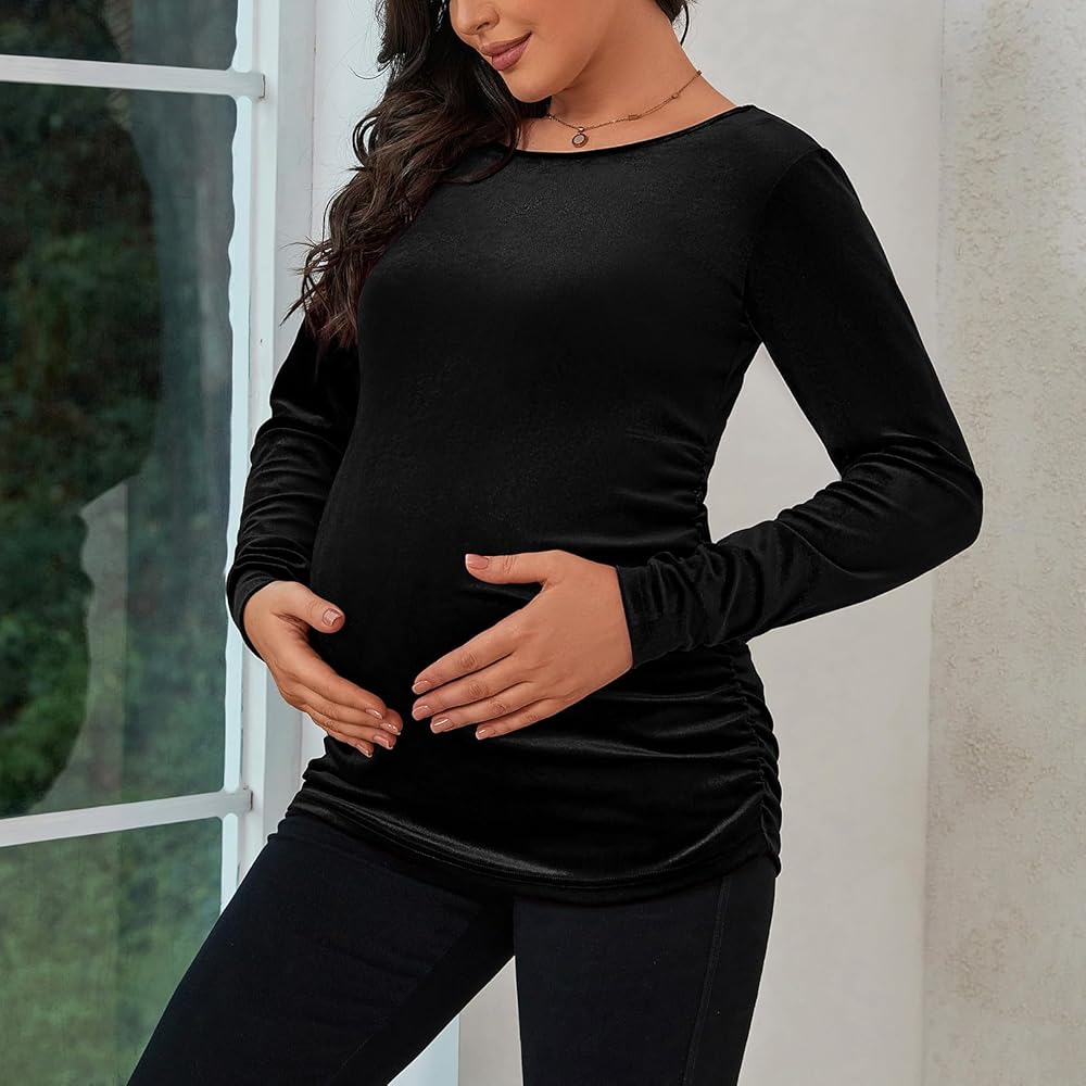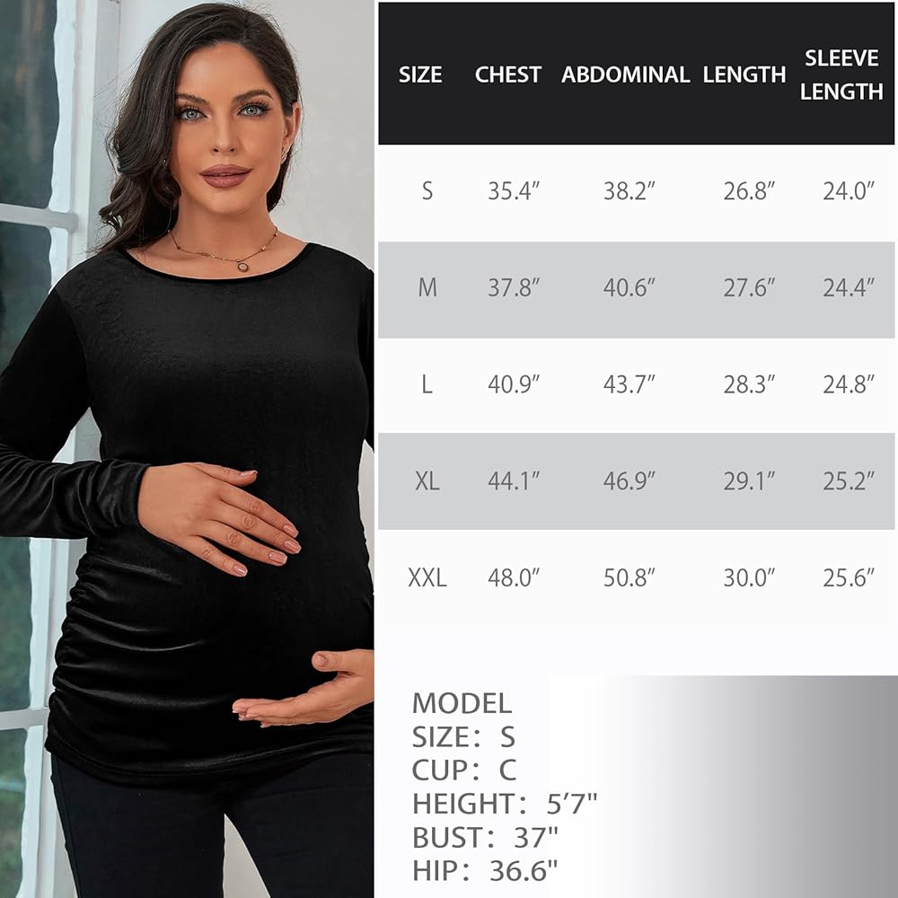 خزانة ملابس أساسية متعددة الاستخدامات: قميص الحمل طويل الأكمام هذا هو إضافة متعددة الاستخدامات لخزانة ملابس الأمومة الخاصة بك. يمكن ارتداؤه بسهولة لأعلى أو لأسفل. التصميم غير الرسمي يجعله متعدد الاستخدامات ويتناسب بشكل مثالي مع الجينز أو السراويل الجلدية أو السراويل الضيقة أو السراويل المخملية أو التنانير أو غيرها من الأجزاء السفلية.