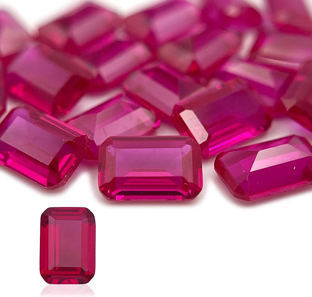 هذه الأحجار الكريمة عبارة عن ياقوتة صناعية تم إنتاجها في المعمل وتتميز بشفافية وصلابة عالية. فهي ليست مصبوغة أو مركبة.