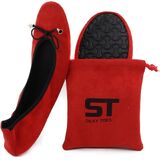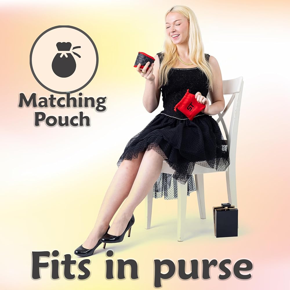 شقق مسطحة ثورية قابلة للطي. حذاء مسطح مثالي أثناء التنقل. يبلغ مقاس حقيبة الحمل المطابقة 10.16 سم × 11.43 سم حتى يمكن وضعها بسهولة في حقيبة يدك أو حجرة القفازات لمرافقتك في المناسبات أو ليلة النادي، أو في رحلات الطائرة، أو رحلات السيارة الطويلة.
