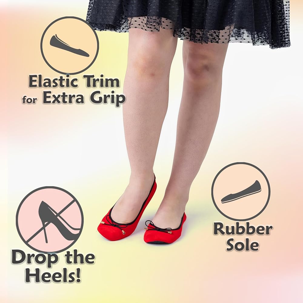 أعلى تصنيف من قبل SHOE PURSUITS، أحذية Silky Toes القابلة للطي هي الأحذية المفضلة عندما تشعر بالنار في قدميك. قم بخلع كعبك، وارتدي هذه النعال المريحة، وتنفس الصعداء، وأكمل حفل زفافك أو مناسبتك أو حفلة عيد الميلاد الخاصة بك براحة وأناقة.