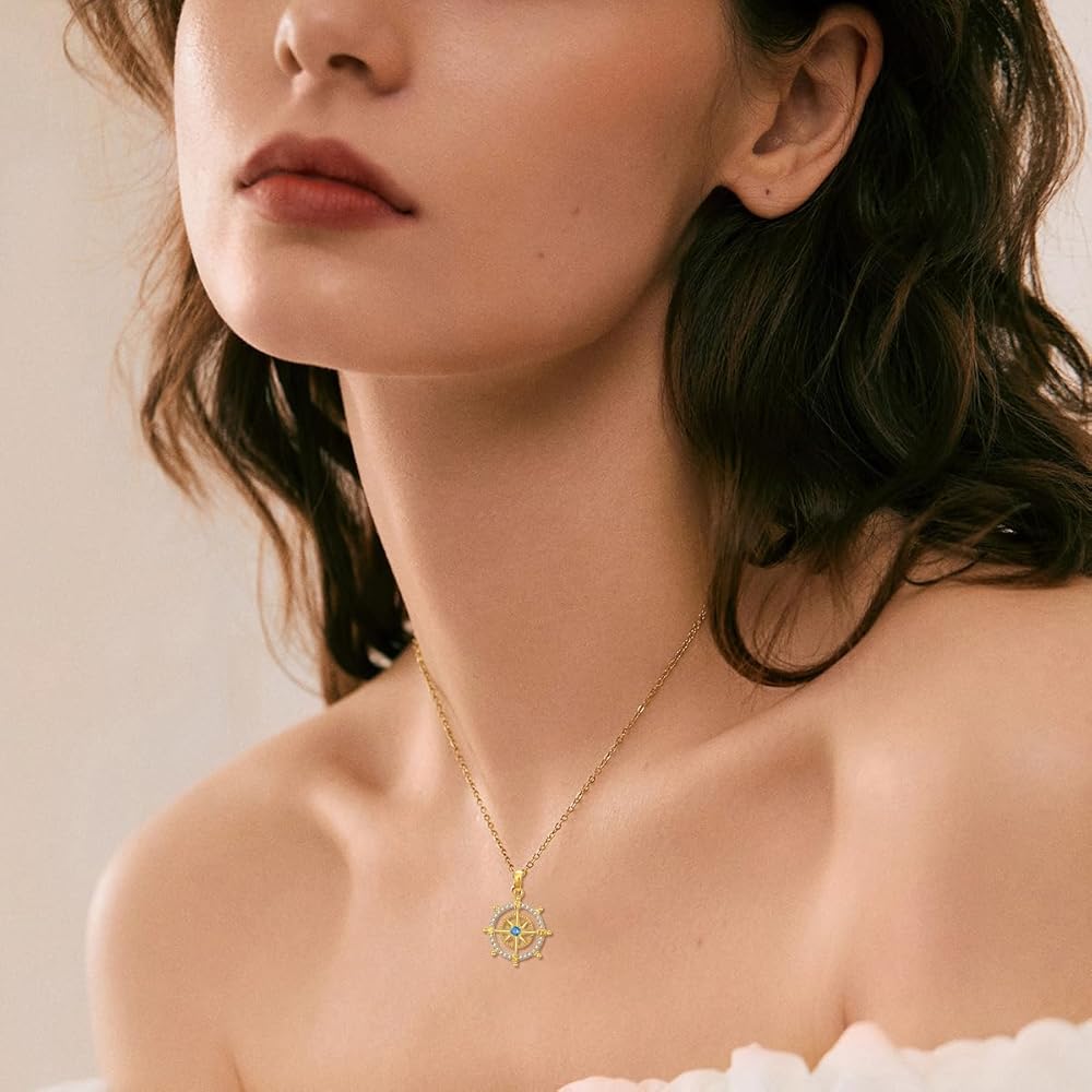 ❤【المقاس】مقاس القلادة: 0.64 انش (16.5 ملم)، طول السلسلة: 16+2 انش. ستناسب قلادة البوصلة 14 قيراط للنساء جميع مقاسات الرقبة بشكل مريح.