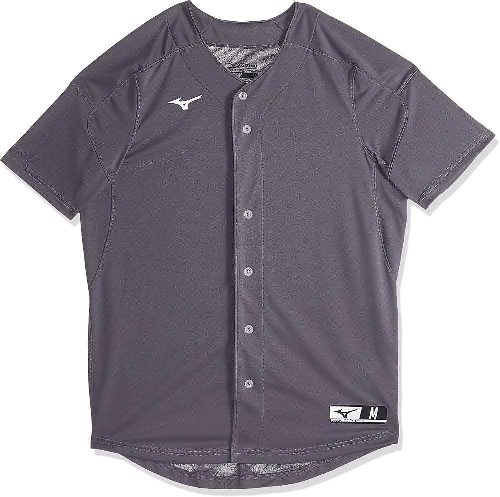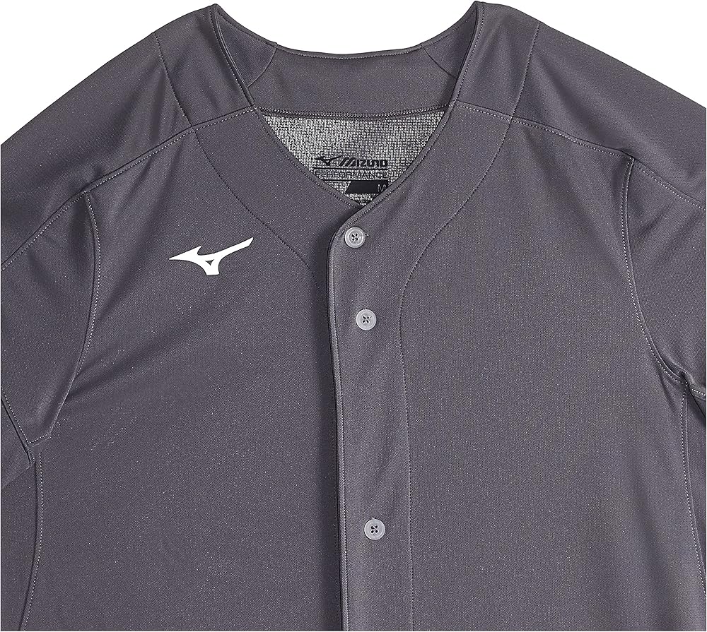 ميزونو قميص بيسبول متين وخفيف الوزن بأزرار كاملة. أكمام ريجلان ملونة وتحت الإبطين لزيادة المرونة والمظهر والأداء المثالي الجاهز للعب.