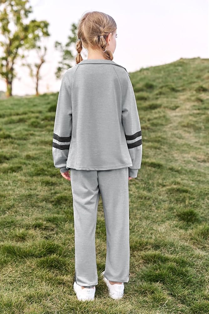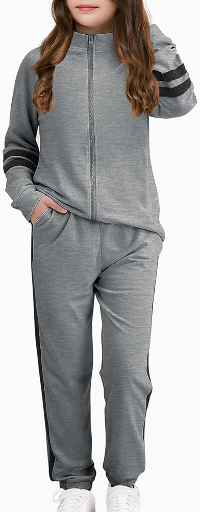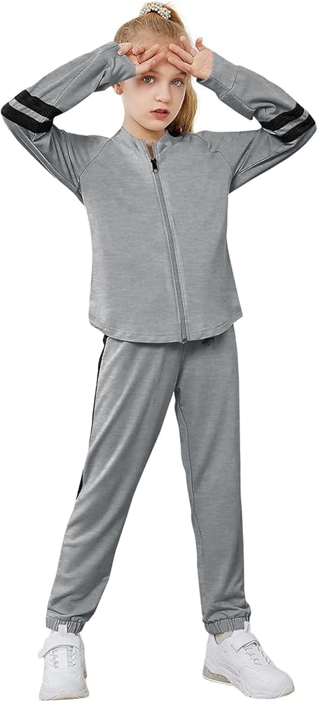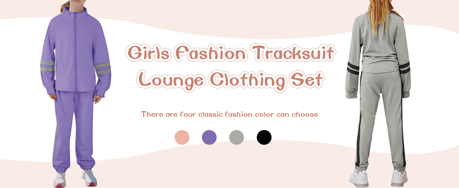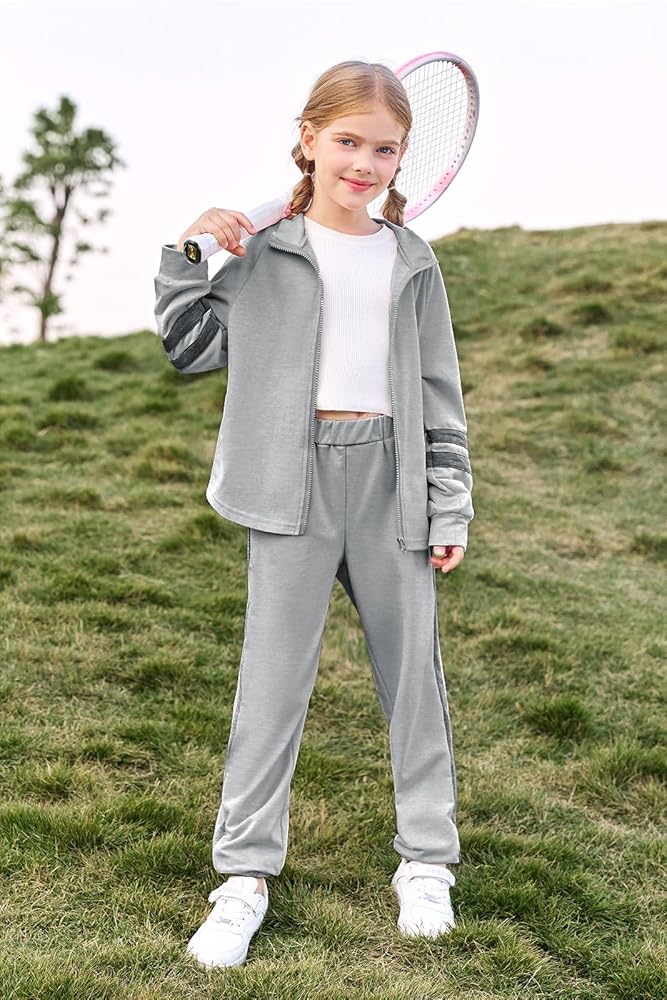 الميزات: تم تصميم هذه البدلة الرياضية للفتيات لتوفير الأناقة والراحة لفتاتك الصغيرة. يتميز السويت شيرت بأكمام طويلة وسحاب للإغلاق، بينما يوفر بنطال الركض مقاسًا مريحًا وخصرًا مرنًا وجيوب جانبية لسهولة الحركة