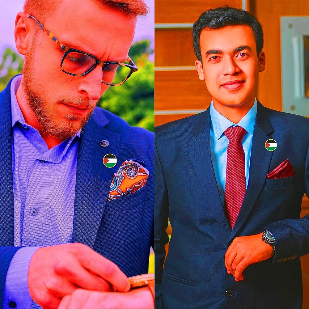 • Palestine Flag lapel pins: You will receive a batch of small round Palestinian flag lapel pins that you can pin to your suit, jacket, clothing, backpack or hat for decoration.