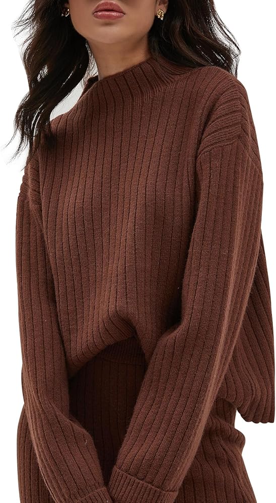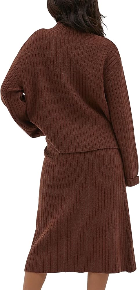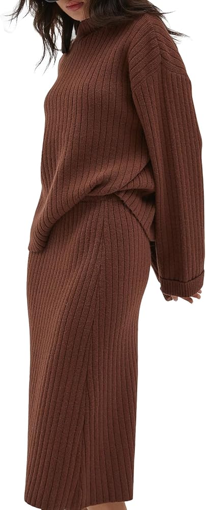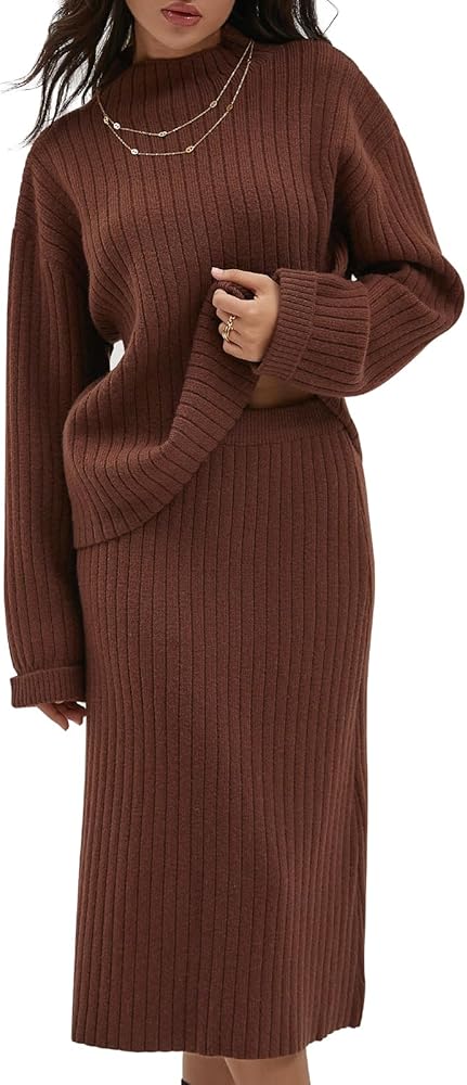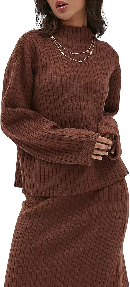 CHYRII Womens Fashion Two Piece Outfits Mock Neck Oversized Sweater Tops Skirt Sets Sweater Dress Lounge Sets