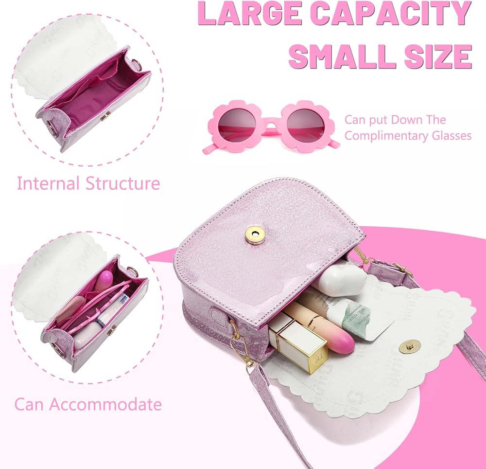 سهلة الاستخدام: تحتوي حقيبة الكتف على حزام قابل للفصل ومقبض من اللؤلؤ الاصطناعي. يمكن للأطفال حملها كحقيبة كروس أو حقيبة كتف أو حقيبة يد، كما أنها حقيبة لطيفة تتماشى مع النظارات الشمسية للأطفال، وسوف تحصل على إطراء أينما ذهبت.