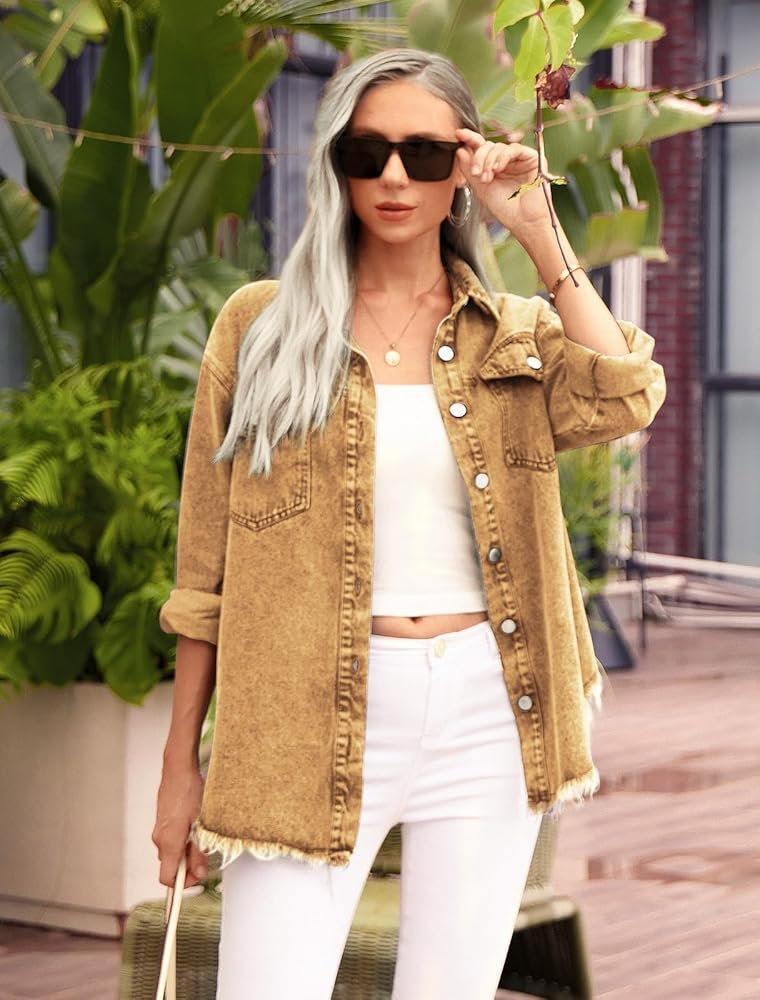 【تشكيلات متعددة】يمكن مطابقة سترة الدنيم النسائية هذه تمامًا مع السراويل والسراويل القصيرة والتنانير والفساتين، لذلك لم تعد تقلق بشأن ارتدائها عند الخروج.