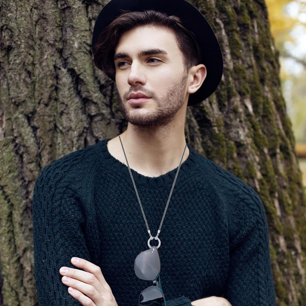 تصميم فريد: تصميم بسيط، هيكل مزدوج التعليق يمنح الخاتم ثباتًا جيدًا. طول السلسلة: 44.5 سم. حلقة دائرية: 1 انش، المقاس المناسب لتعليق أي نمط من النظارات. تبدو وكأنها قلادة. 2 في 1، مناسب لمجموعة متنوعة من المناسبات.