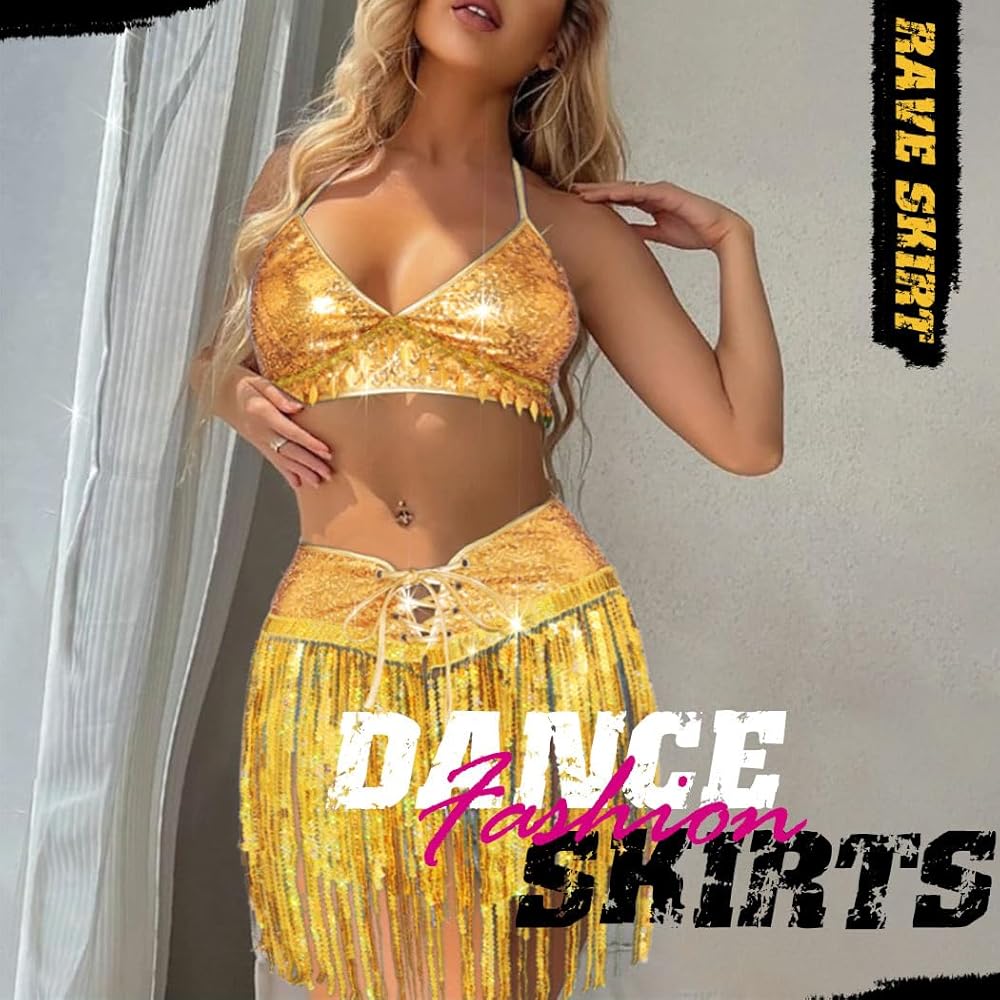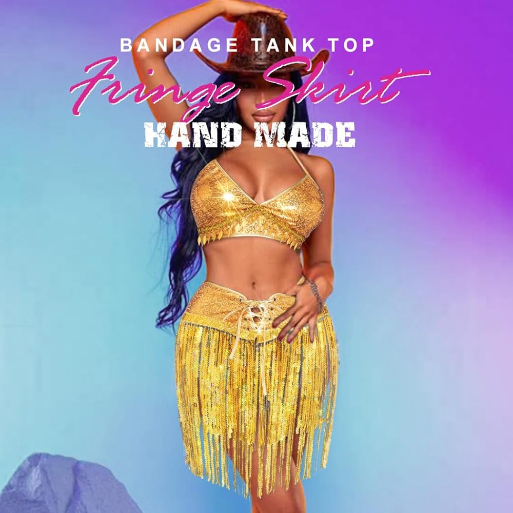 Fringe sequin skirt set will be packaged in a bag to keep its shape when arrived at your side. No worry about they will getting tangled or messy. Feel free to ask any question.