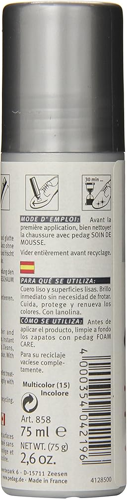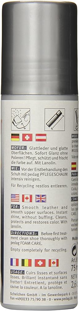 No buffing required! Pedag Selfshine is an instant liquid shine for all smooth leather. Cleans, protects, and restores color. Easy sponge applicator-no muss/no fuss. Referees, umpires, business people love Selfshine. Keep a bottle with your equipment or briefcase. Lanolin preserves leather's suppleness, moisture, and oils. Color pigments keep the color fresh (neutral brightens color but does not add pigment). Acrylic resins bind color pigments, and add luster and shine. Selfshine applications produce virtually no waxy buildup.