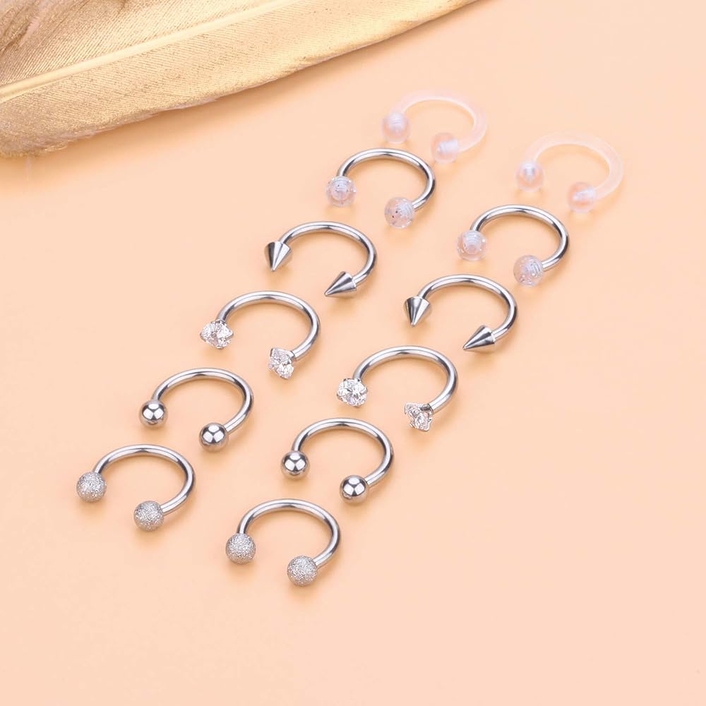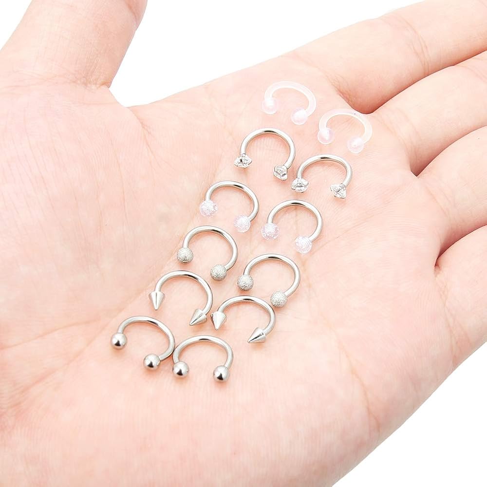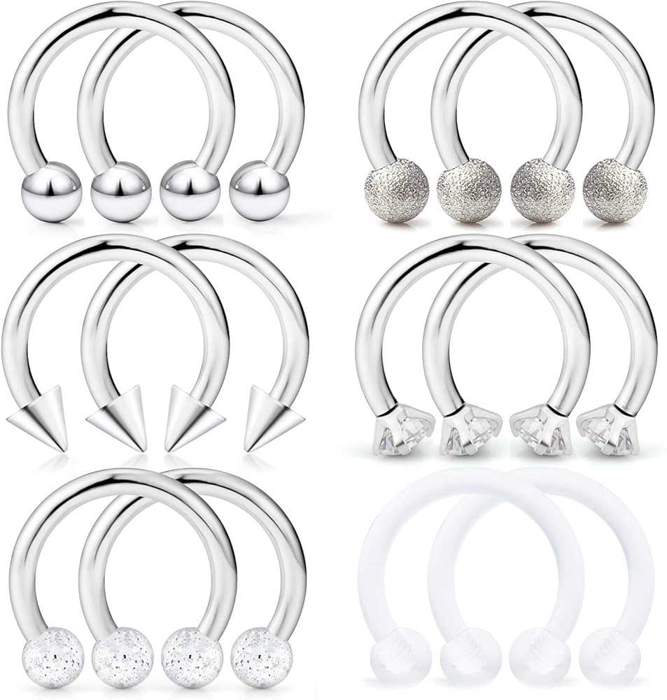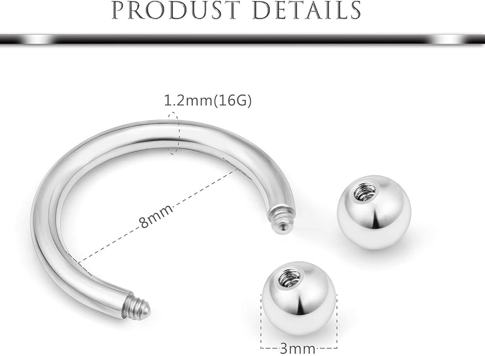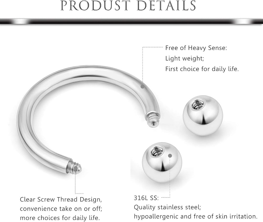 • MULTIPLE USES--Trendy Circular Horseshoe Barbell Design, Popular as Helix Hoop Rings, Cartilage Barbells, Lip Hoop Rings, Labret Hoop Piercings, Septum Piercings, Rook Piercings, Conch Hoop, Eyebrow Hoop Rings.