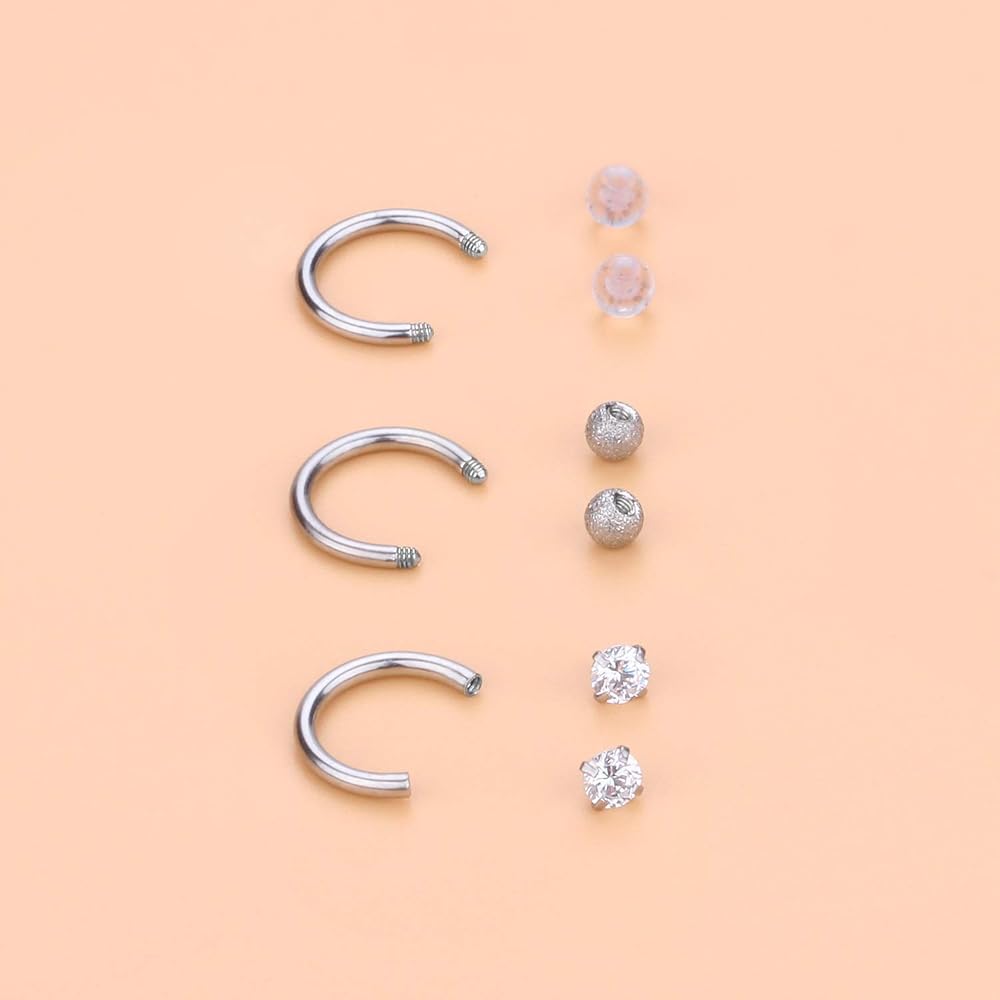 • PERFECT SET--One Order Including 12Pcs Circular Horseshoe Barbell(CBR) Piercing Jewelry in 6 Styles(Shiny Ball, Spike, Gilitter Ball, Matte Ball, Clear Diamond CZ and Clear Acrylic Ball). The Top Can Be Easily Screwed in and out, Convenient for Wearing.