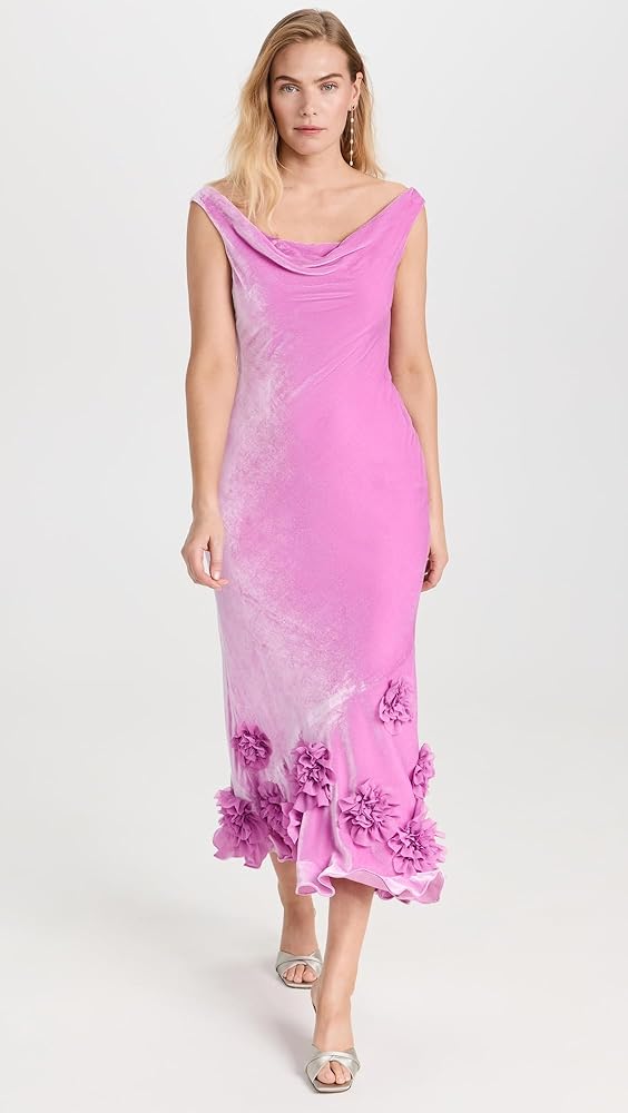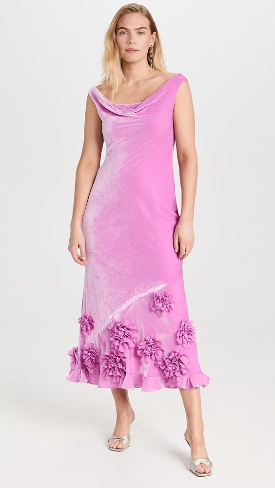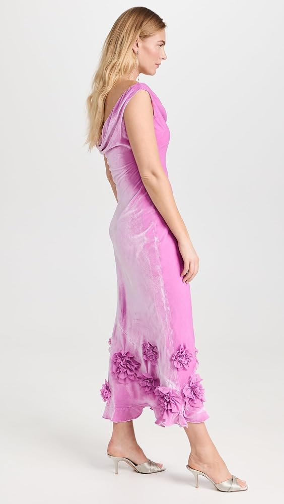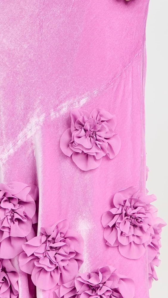 زخارف زهور الشيفون عند الحاشية، مقصوصة بشكل مائل من أجل تمدد بسيط وثنية أنيقة