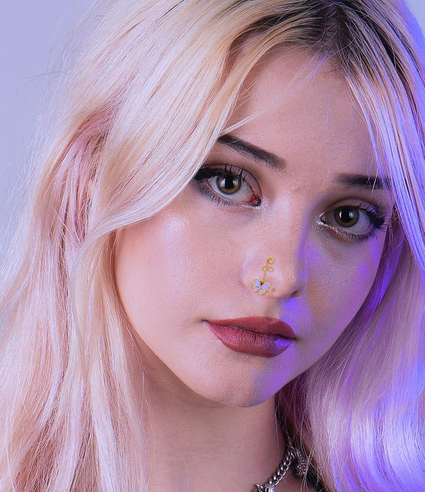 💜أساور أنف مطلية بالذهب عيار 14 قيراط 💜حلقات الأنف غير المثقوبة هذه مصنوعة من النحاس عالي الجودة، وتخضع لعملية مطلية رائعة. سطح لامع وناعم مع مصقول، ليس من السهل أن يبهت، وخالي من الرصاص والنيكل ولا يسبب الحساسية. لن تشعر أبدًا بعدم الراحة عند ارتدائها، يمكنك تعديلها لتناسب أنفك.