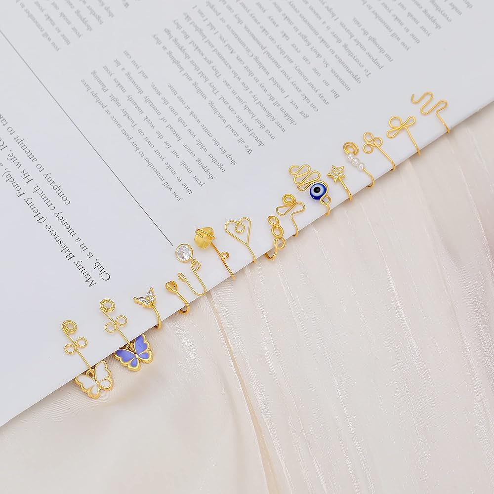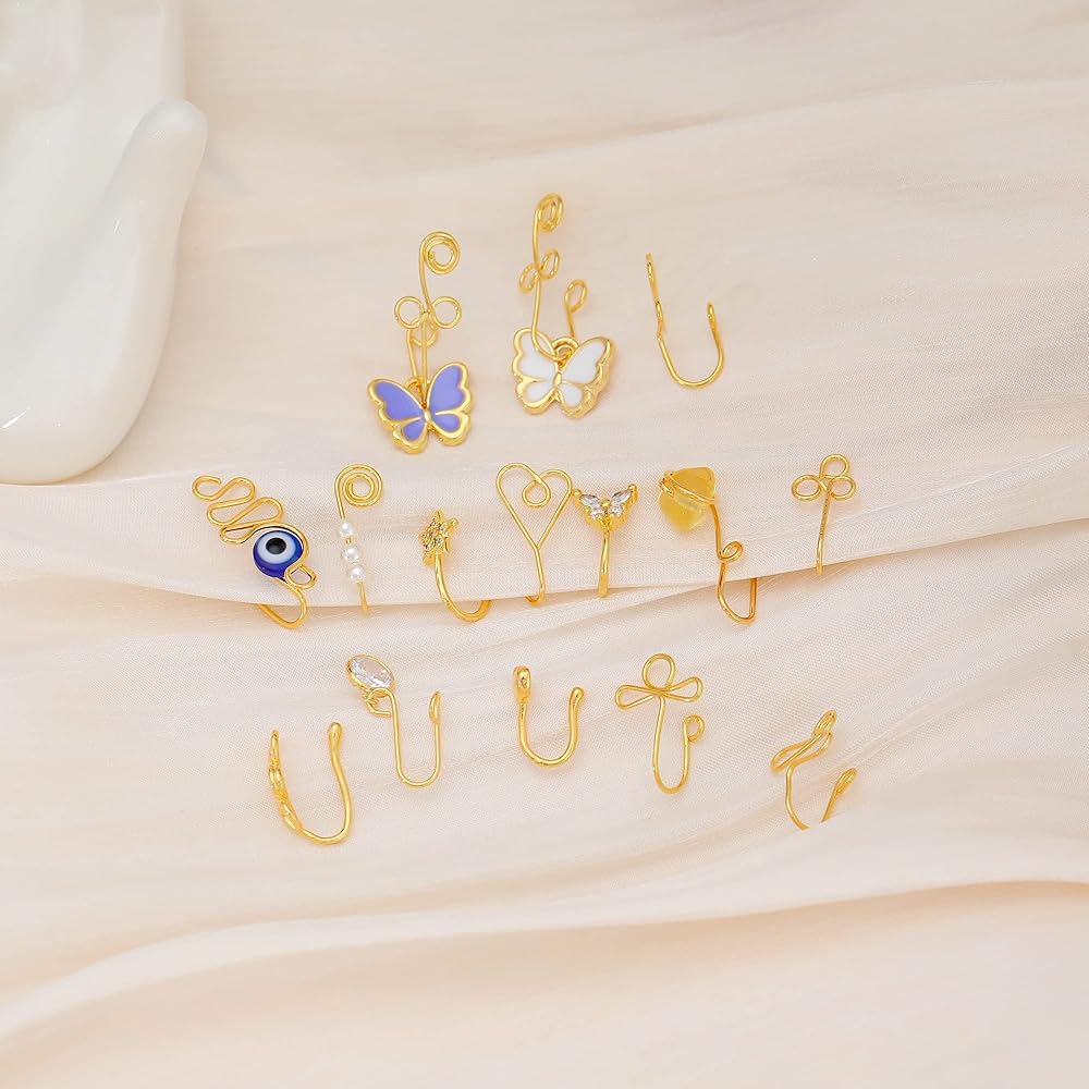 💛تتوافق مع معظم المناسبات، يمكنك أخذها كحلقات أنف أو أساور أذن مزيفة. يمكنك ارتداء أنماط مختلفة مع ملابسك المختلفة. إنها رائعة وجذابة وعصرية حتى تتمكن من مقابلة أي مناسبة. احمل مظهرك بسهولة من المكتب إلى الحفلات. 16 حلقة أنف صناعية مختلفة يمكن أن ترضي أنماطك الأنيقة والرائعة والترفيهية.
