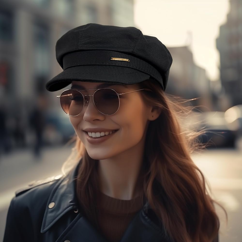 • Trendy Design: The octagaonal cap decorated with a chic metal in the side of brim, adds a elegant and charming sophistication to any outfit