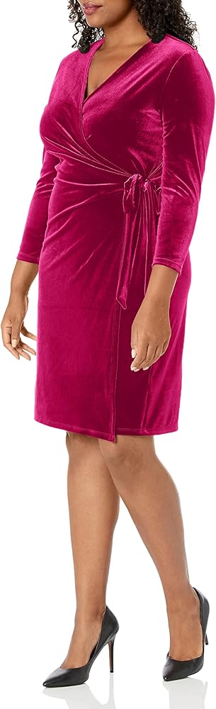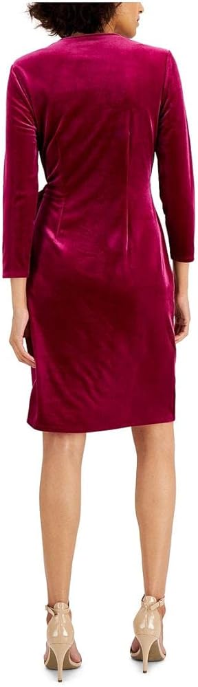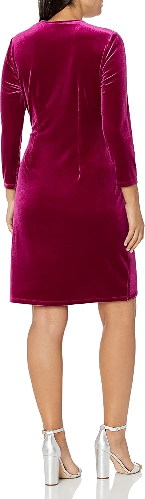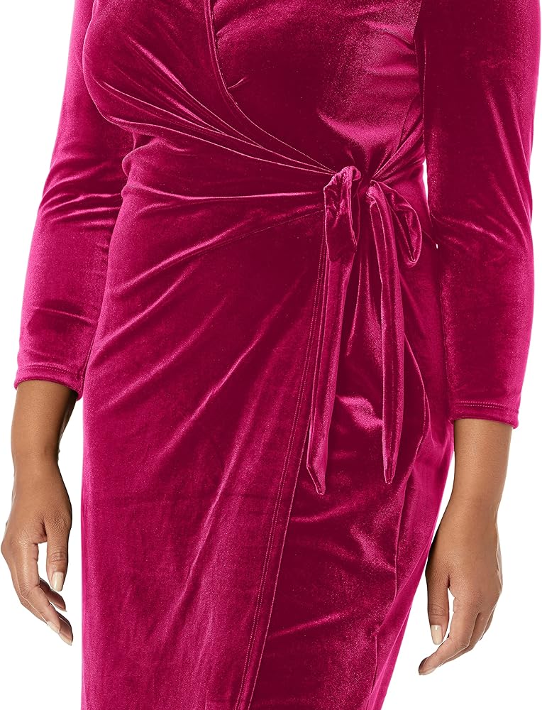This Anne Klein Dress is apart of the Journey Collection. The Journey Collection offers easy to wear silhouettes in multiple colors and prints that can be worn whether your in the office, working from home, or travelling. This dress comes in a stunning velvet fabrication with an added tie detail at the waist.
