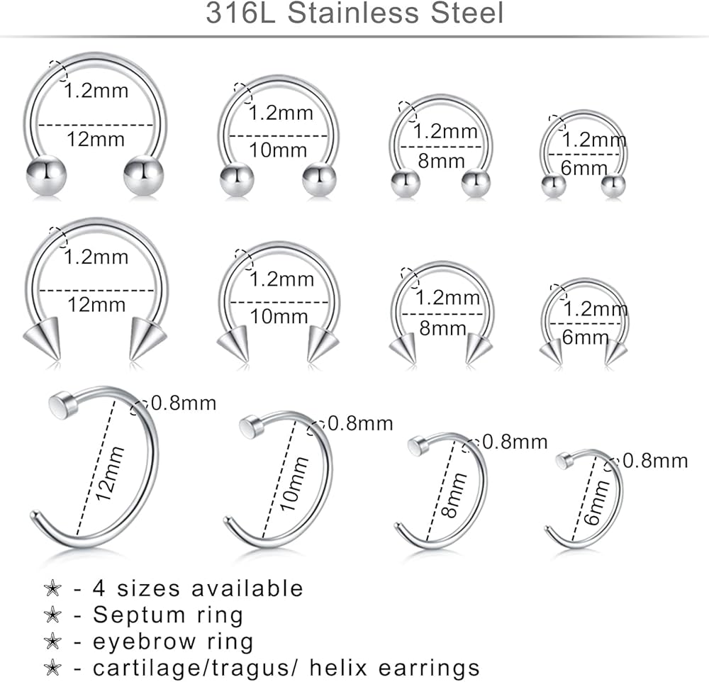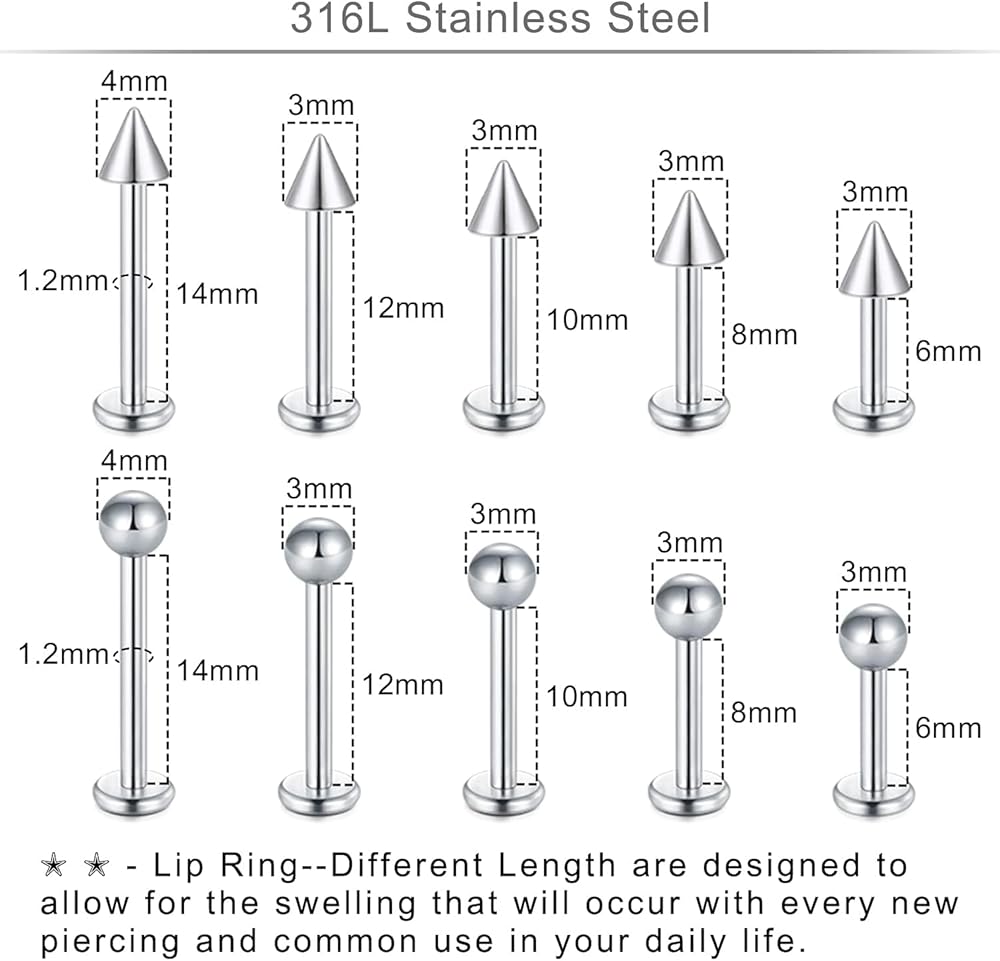 [الاستخدام] يمكن استخدام مجموعة المجوهرات المثقوبة للجسم هذه للأنف والحاجز والشفاه والحاجب واللسان والبطن والسرة والأذن وما إلى ذلك (لجميع ثقوب الجسم)