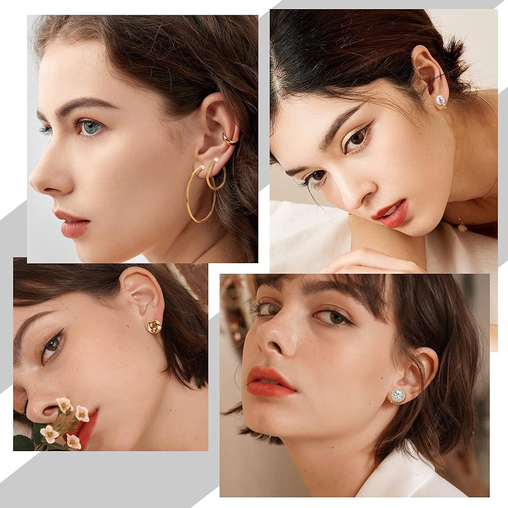 【مجموعة أقراط مشبكة】يحتوي طلب واحد على 16 زوجًا من الأقراط المشبكية: 6 أزواج كلاسيكية من الأقراط المشبكية، و4 أزواج من الأقراط الحلقية المشبكية و6 أزواج من الأقراط الحلقية المشبكية المكتنزة، تصميم كلاسيكي وأنيق، سوف يتناسب بشكل جيد مع أي زي، وأنماط مختلفة من الأقراط المشبكية سوف تلبي احتياجاتك المتنوعة في الارتداء.