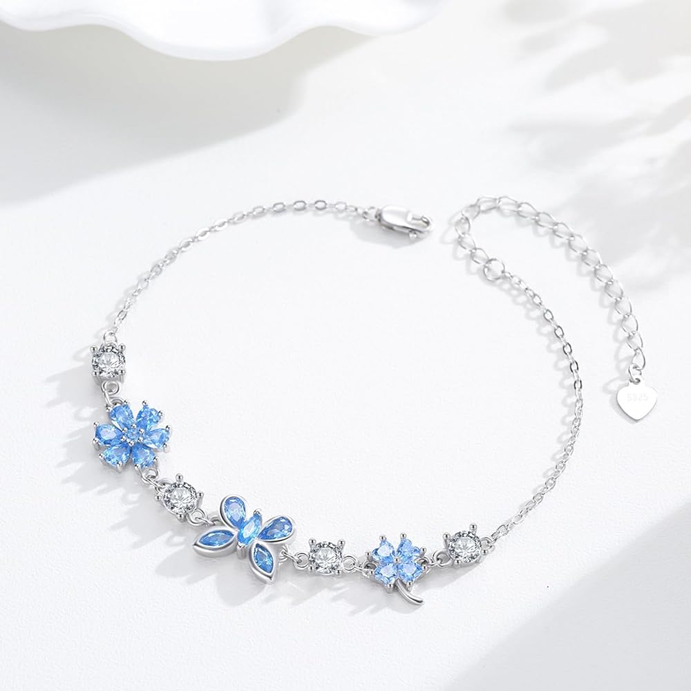 اساور على شكل فراشة وزهرة وبرسيم للنساء من الفضة الاسترليني عيار 925 قابلة للتعديل، سوار بدلاية على شكل فراشة، سوار من الزركونيا المكعب، مجوهرات هدايا عيد الميلاد والكريسماس للبنات والزوجة