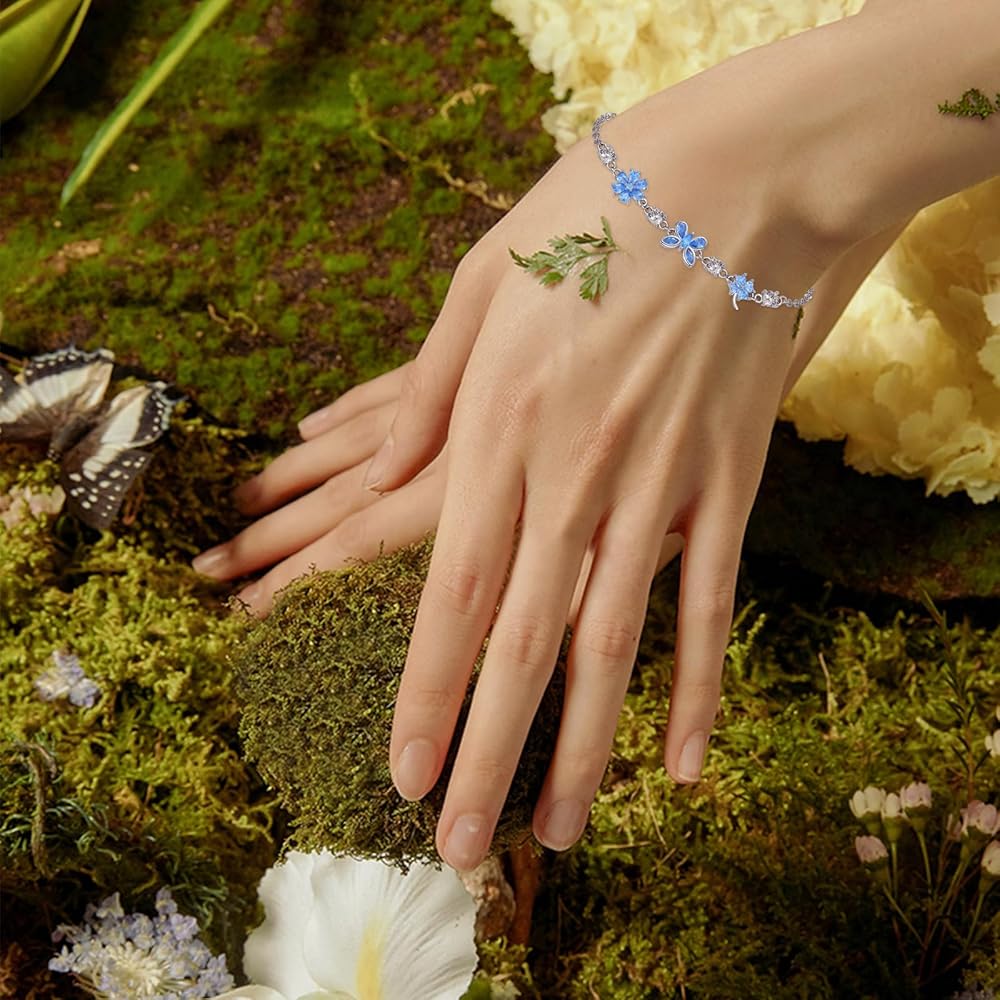 【مادة سوار أوراق البرسيم】أساور بدلاية على شكل زهرة مصنوعة من الفضة الإسترلينية عيار 925، لا تسبب الحساسية، مطلية بالبلاتين، خالية من النيكل، خالية من الرصاص، خالية من الكادميوم، ولا تحتوي على مواد تسبب الحساسية، أساور الفراشة لن تسبب الحساسية لك