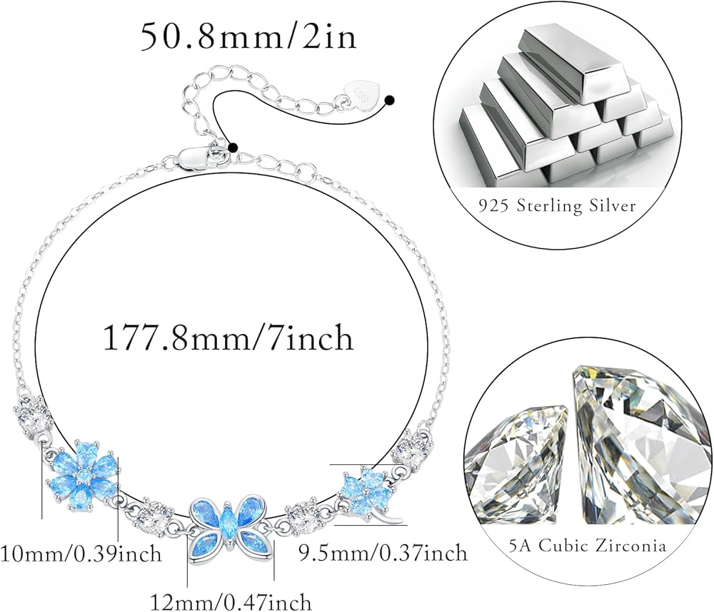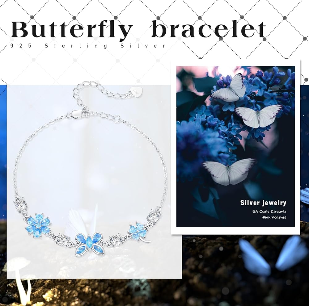 تصميم سوار الفراشة والبرسيم: ترمز الفراشة إلى الحرية والجمال، سوار الفراشة الأنيق يمثل الحب الأبدي. تصميم محظوظ بأربع أوراق البرسيم، كل ورقة على شكل قلب تمثل الأمل والإيمان والحب والحظ. مناسب لأي مناسبة، يسهل تنسيقه مع أي ملابس، سوار فضي عصري مع قلادة فراشة على شكل ورقة البرسيم الخالدة وحجر زركونيا مكعب هالة، مناسب للحفلات والارتداء اليومي في المكتب، هدايا مجوهرات أفضل الحظ لها.
