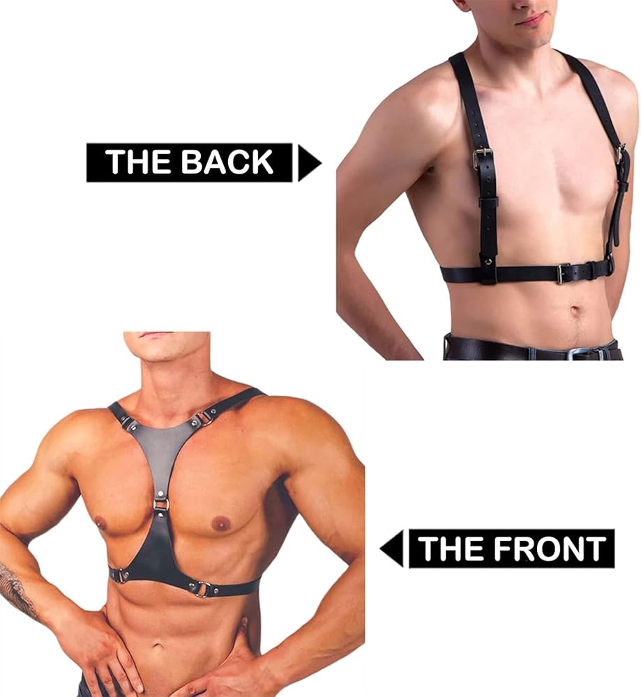 • 💕[Show off Your Charm] This masculine looking body harness can be worn over a t-shirt, shirt or no shirt, matching different looks, showing off your figure and making you look very sexy and fashionable. Your woman will not be able to take his eyes off you when your attractive body is wrapped in this leather-like material.