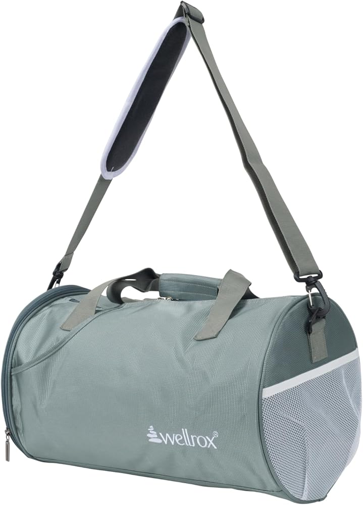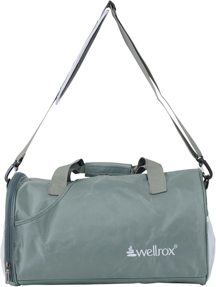• ULTIMATE WORKOUT GYM BAG: Wellrox's grey logo duffle bag features secure mesh pockets on both sides, a comfortable shoulder strap, and handy carrying straps for all-purpose everyday use.