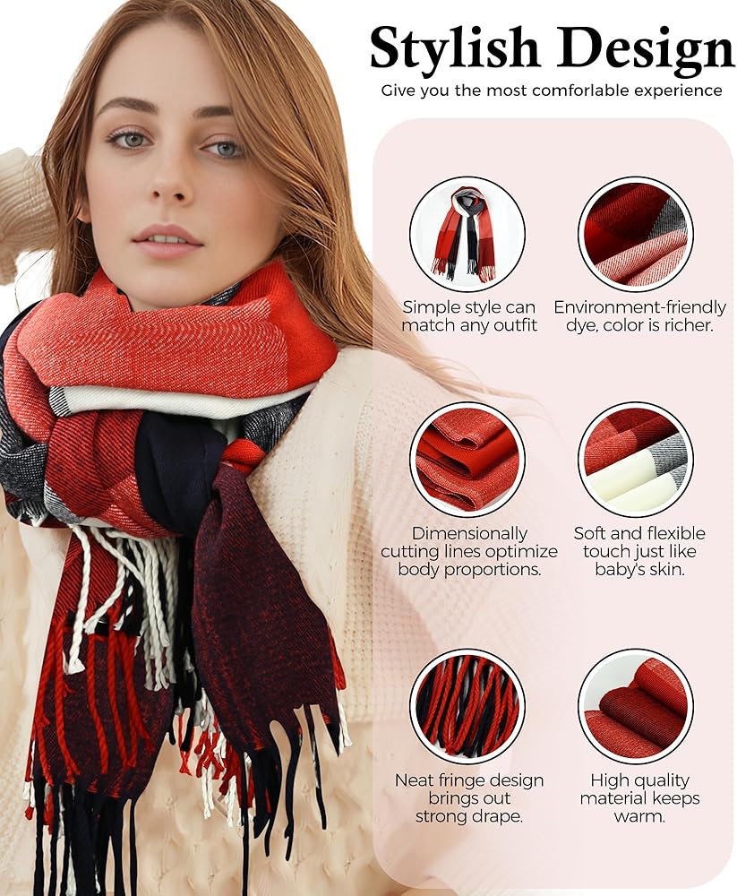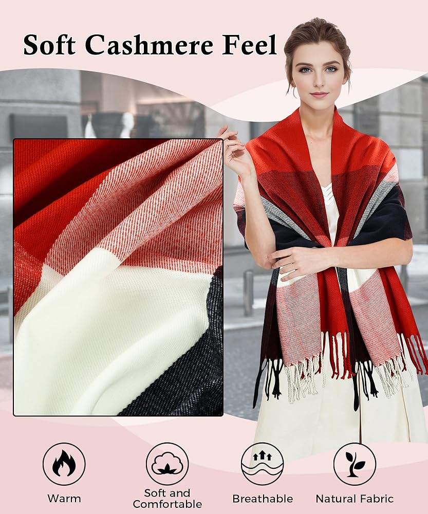 مناسب لأي مناسبة: وشاح أنيق ودافئ مثالي للارتداء اليومي والتنقل والمكتب والحفلات والنزهات والسفر وأكثر من ذلك. الأوشحة والأغلفة النسائية رائعة للخريف والشتاء والربيع. مثالي للارتداء في الخريف والشتاء البارد أو الربيع، يمكنك استخدامه كشال للحفلات، أو كبطانية، أو لالتقاط صور ممتعة لا تنسى في المهرجانات الخاصة. حتى إذا كنت تستخدمها كسجادة للنزهة، فهي فكرة رائعة، كما أنها تساعد كثيرًا عند الذهاب إلى الشاطئ على مدار العام.